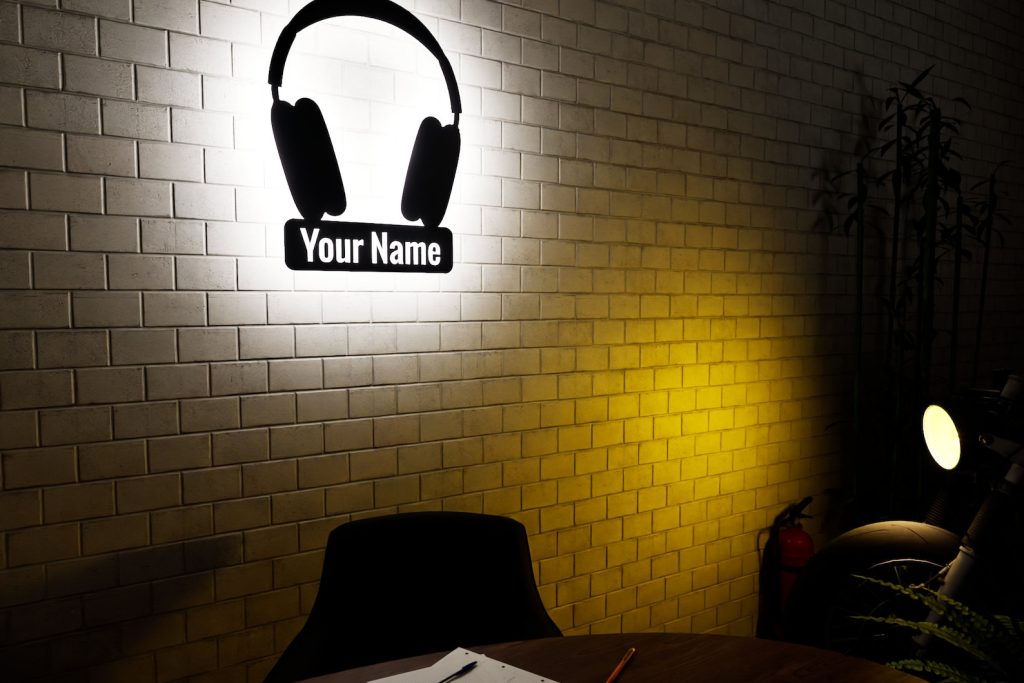 Illuminate your space with our Airpod Headphone RGB LED metal wall sign, where every detail is under your control. Crafted with precision from high-quality MDF or Metal, this wall sign adds a touch of elegance to any room. Personalize it with your name and let the vibrant RGB lighting create an atmosphere that suits your every mood.