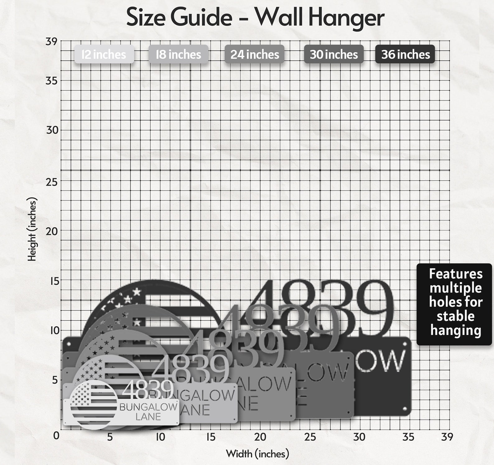 Wall Hanger: These signs can be hung on a wall, off a mailbox, or on a large flat faced rock. While other brands do not include holes for hanging, we make hanging easy by including multiple holes in the best places for sturdy hanging. We DO NOT include hanging hardware like screws or chains. We do this to allow you to hang your sign the way you want.