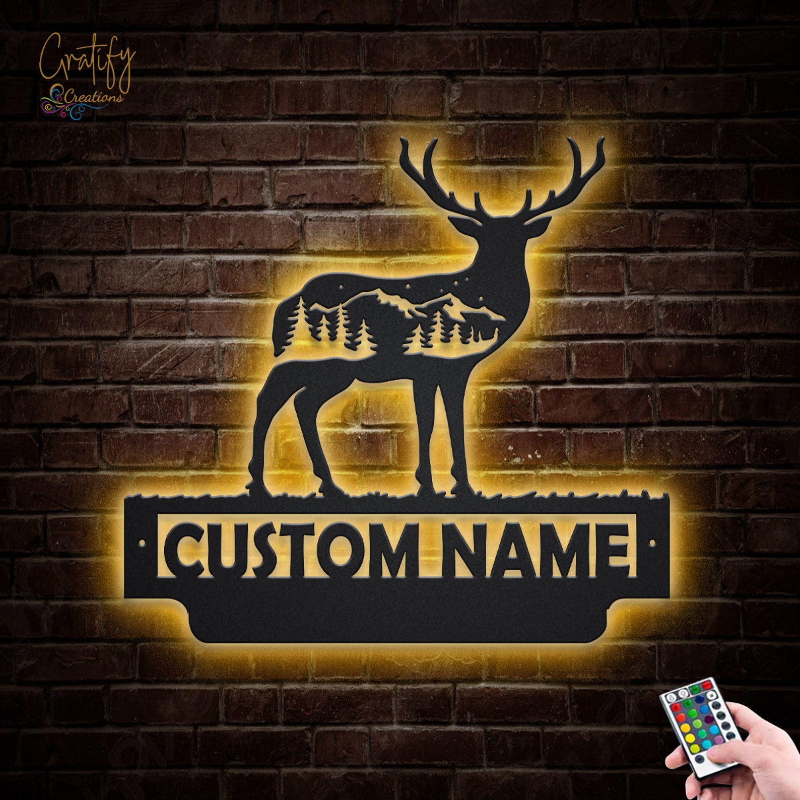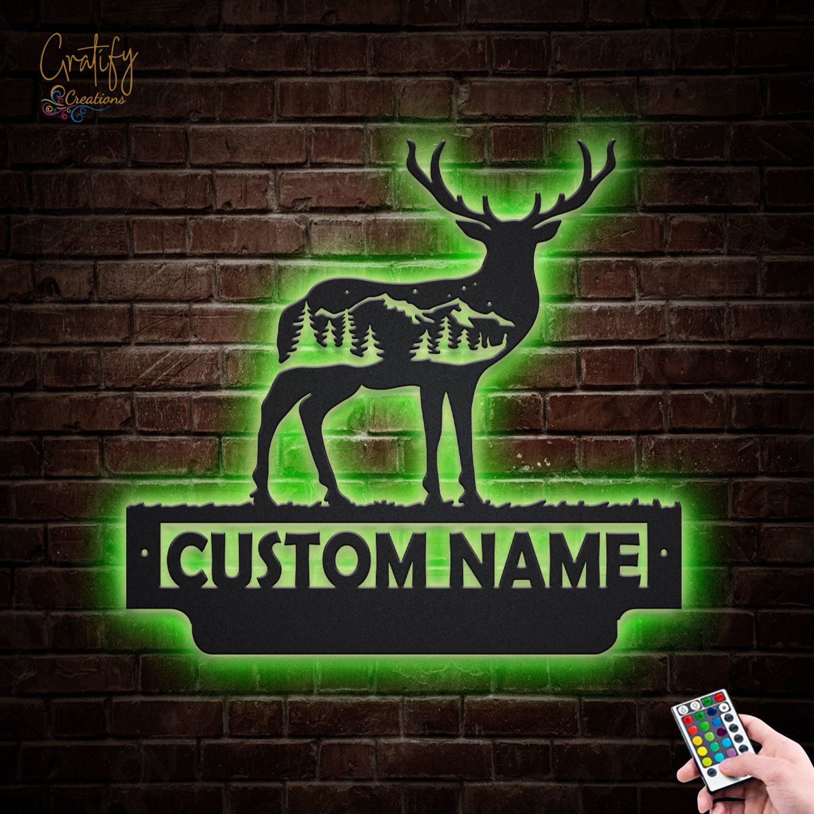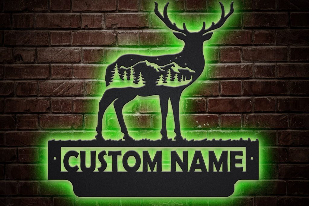 Revamp your hunting cabin with our Custom Deer Hunting Monogram Metal Sign that comes with LED lights. It9;s a perfect addition to your collection of hunting memorabilia. Made with high-quality metal, this sign features a stylish deer design that will surely elevate the aesthetics of your space.