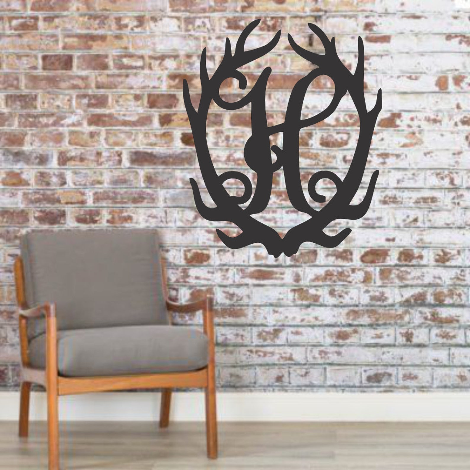 Antler Monogram Hunting Deer Metal Sign – Cabin Decor
