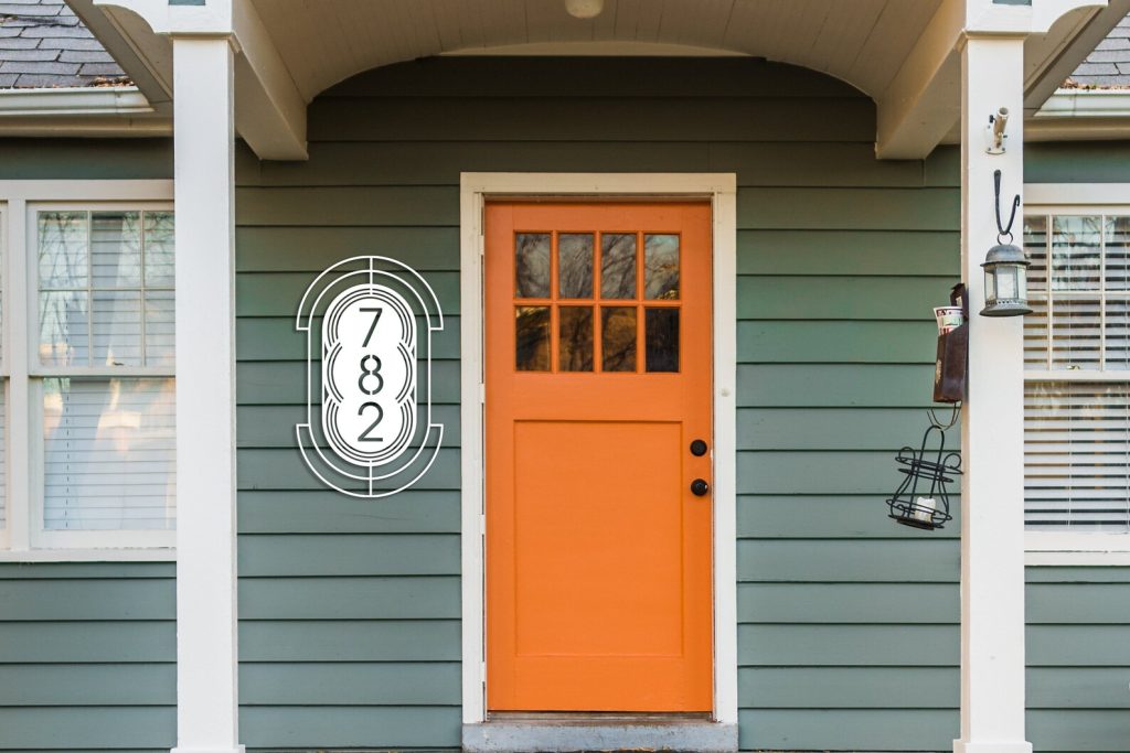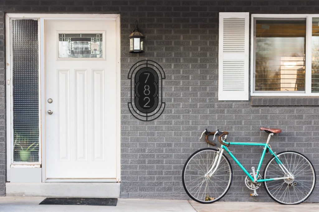 House numbers with extra expression, this one has your number surrounded by bold Folk filigree. I am an artist and designer and I designed these in Adobe Illustrator at home (cat by my side). After you place your order I will send you a mock up so you can see how your words look in the design. Upon approval I will send the file off to Teelaunch, my production partner, where they will cut your sign out of 18 gauge steel and powder spray coat it so it ends up feeling sort of like cast iron but it9;s much thinner, a little thinner than a quarter but strong. Their production time is 5-7 days which means that you should receive it in about 10 days unless it9;s holiday rush time in which case it will probably be 2 weeks.