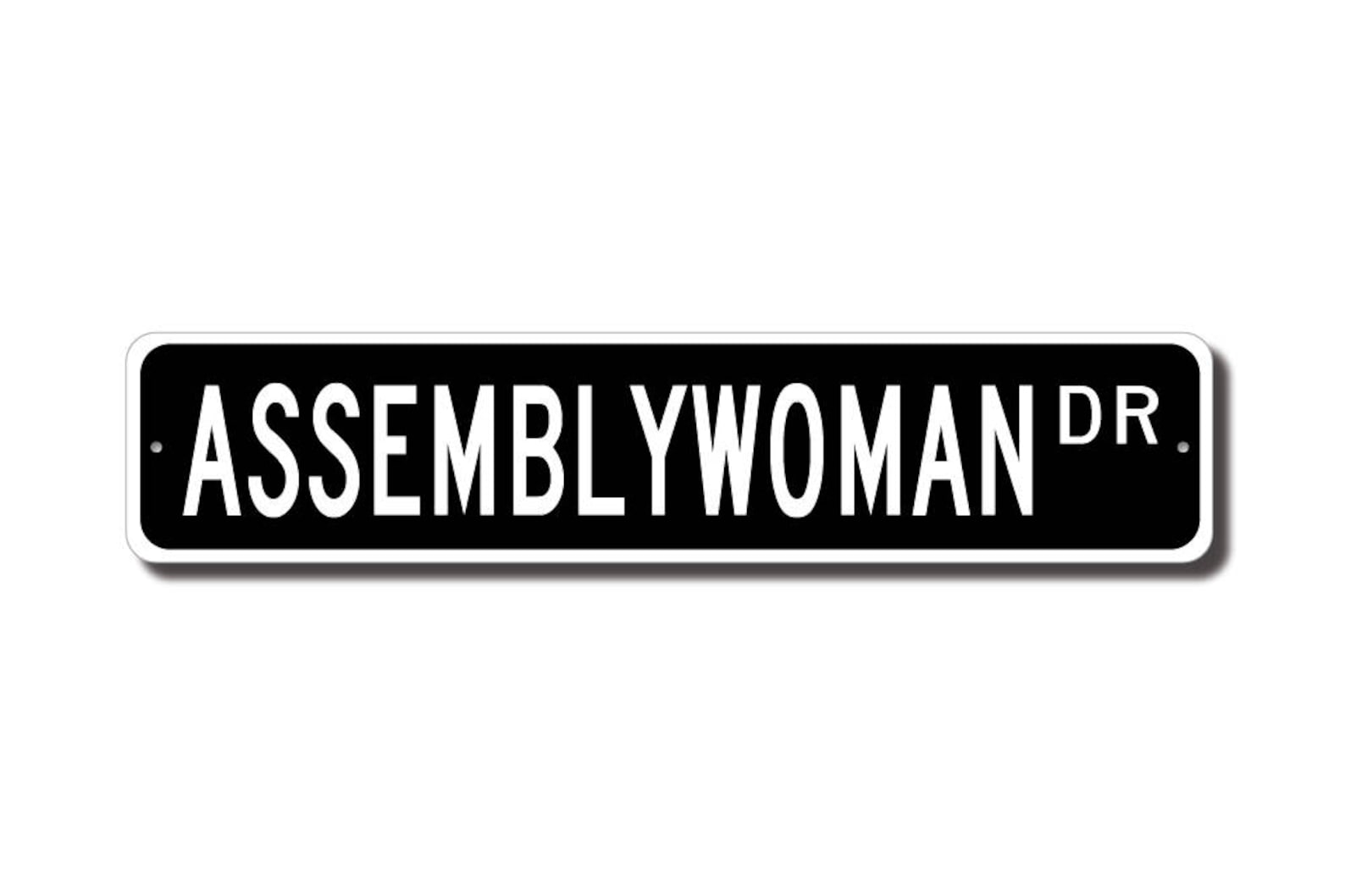 Assemblywomen check out this awesome street sign! This will make the perfect piece for any Assemblywoman or maybe you are an Assemblywoman and want a cool decor piece. Made of premium aluminum it will stand the test of time. This sign will look great in any room, home den, cave, or office! Get this sign for your favorite Assemblywoman !