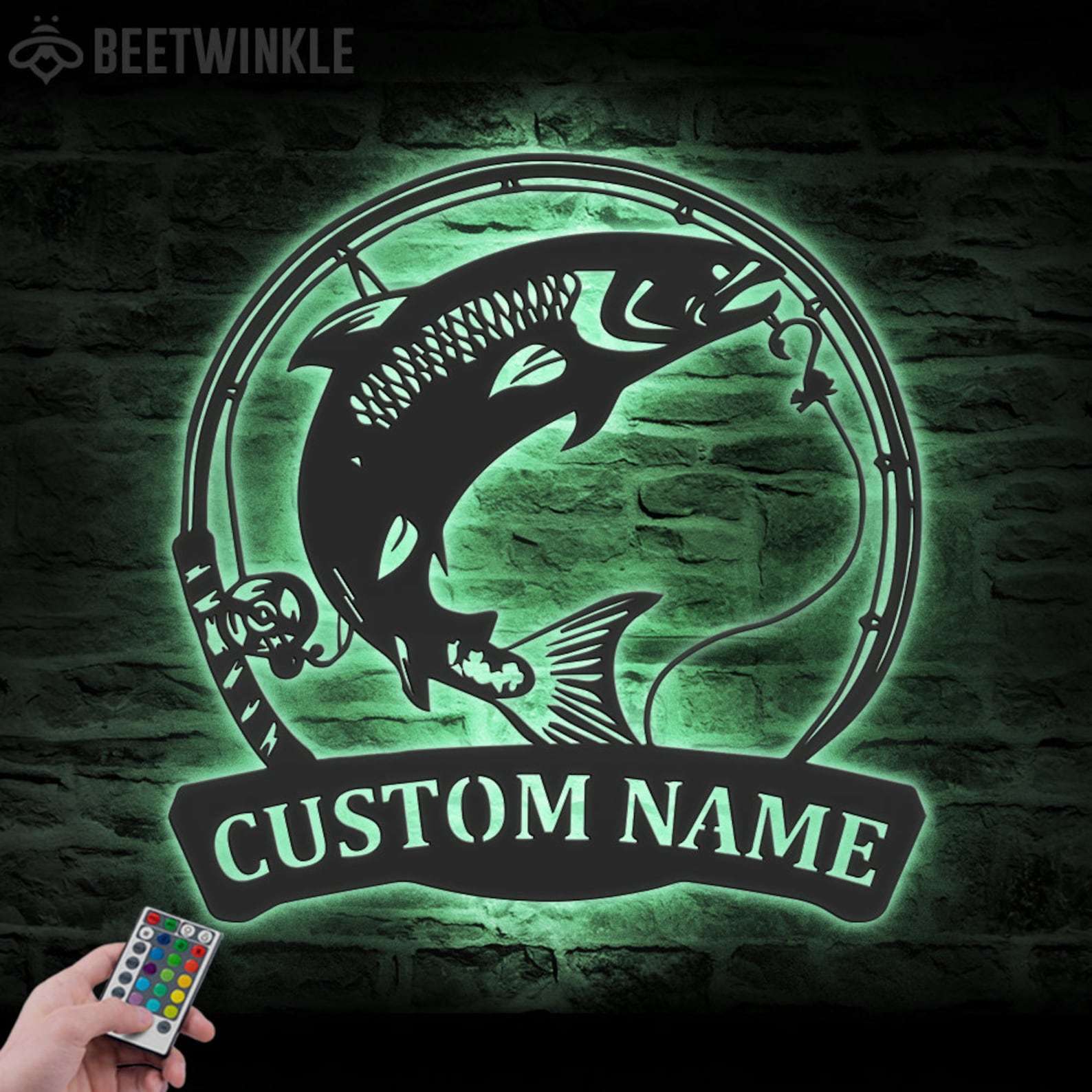 Be the first to review “Atlantic Salmon Fishing Metal Wall Art with LED – Custom Fisher Name Sign”