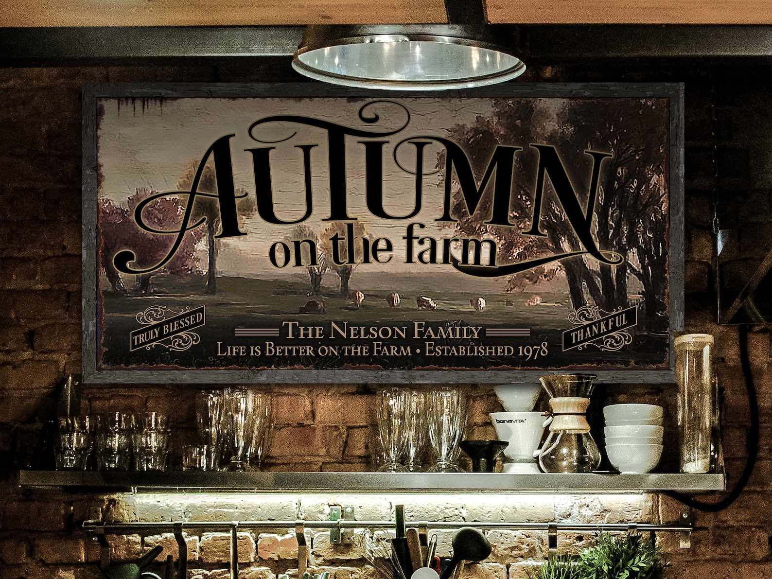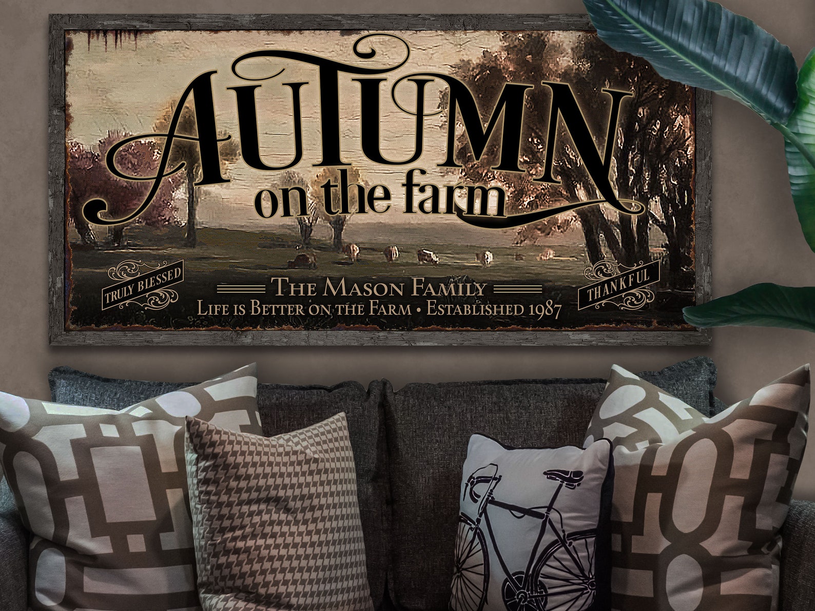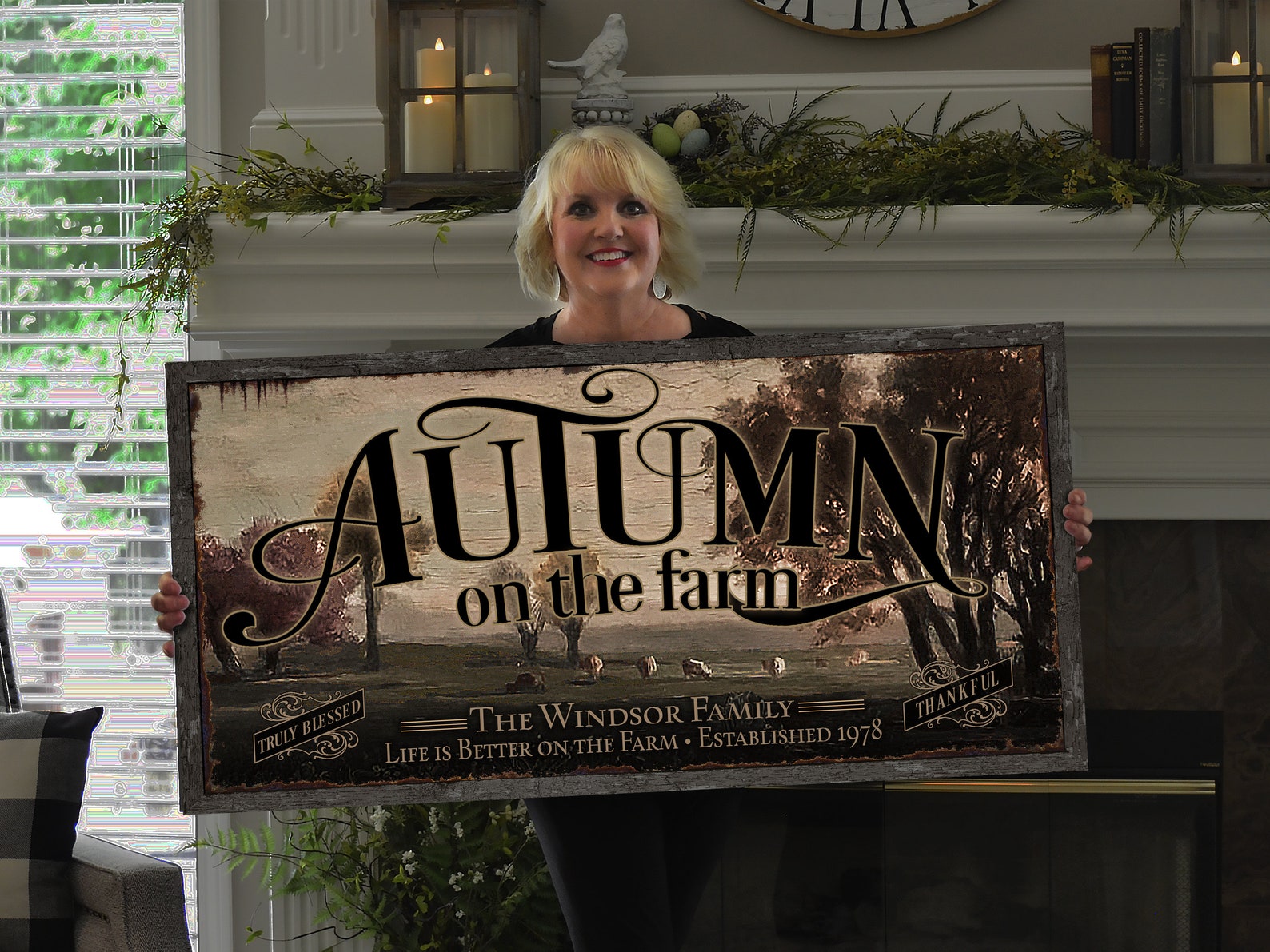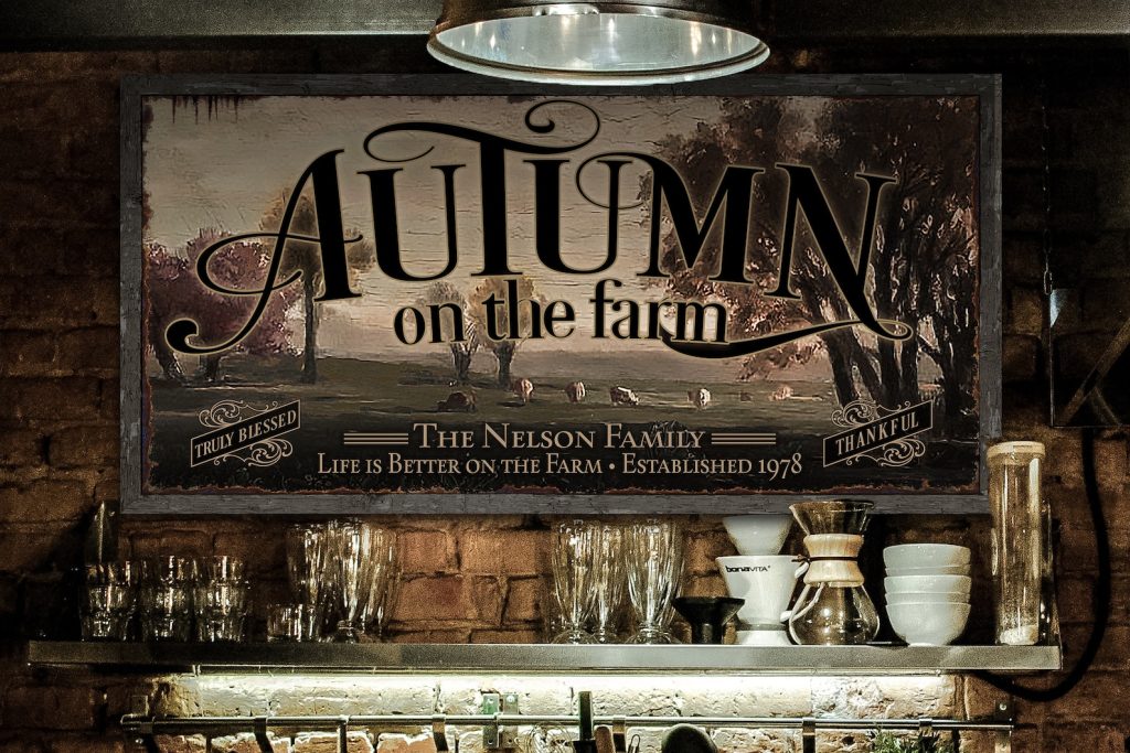 This Autumn Farm sign offers a dark vintage farmhouse look and feel. Display this vintage farm sign anywhere in your home. It adds warmth to any wall.