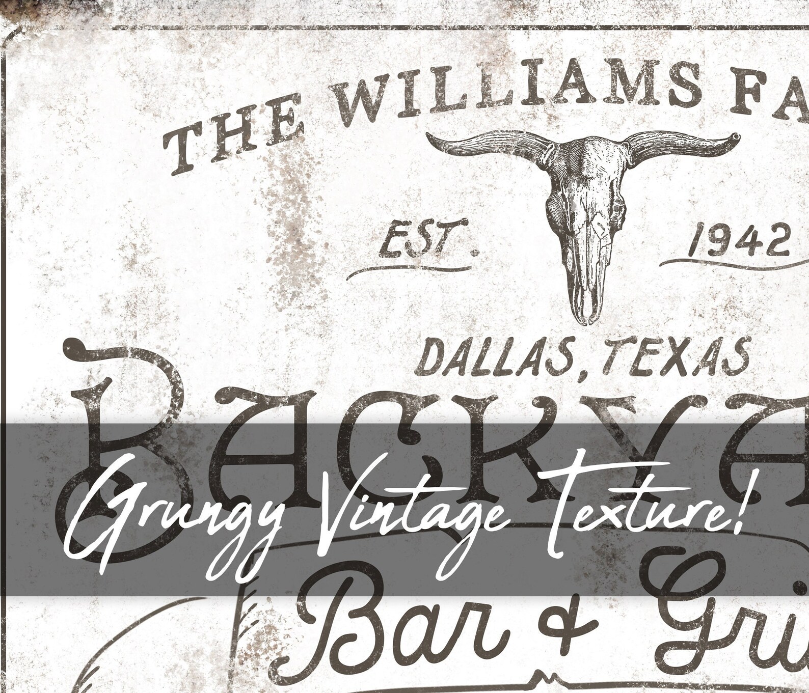 The rustic and weathered textures you see in the artwork will look the same no matter what item you order on. That means metal, wood, and canvas all have the vintage look to them!