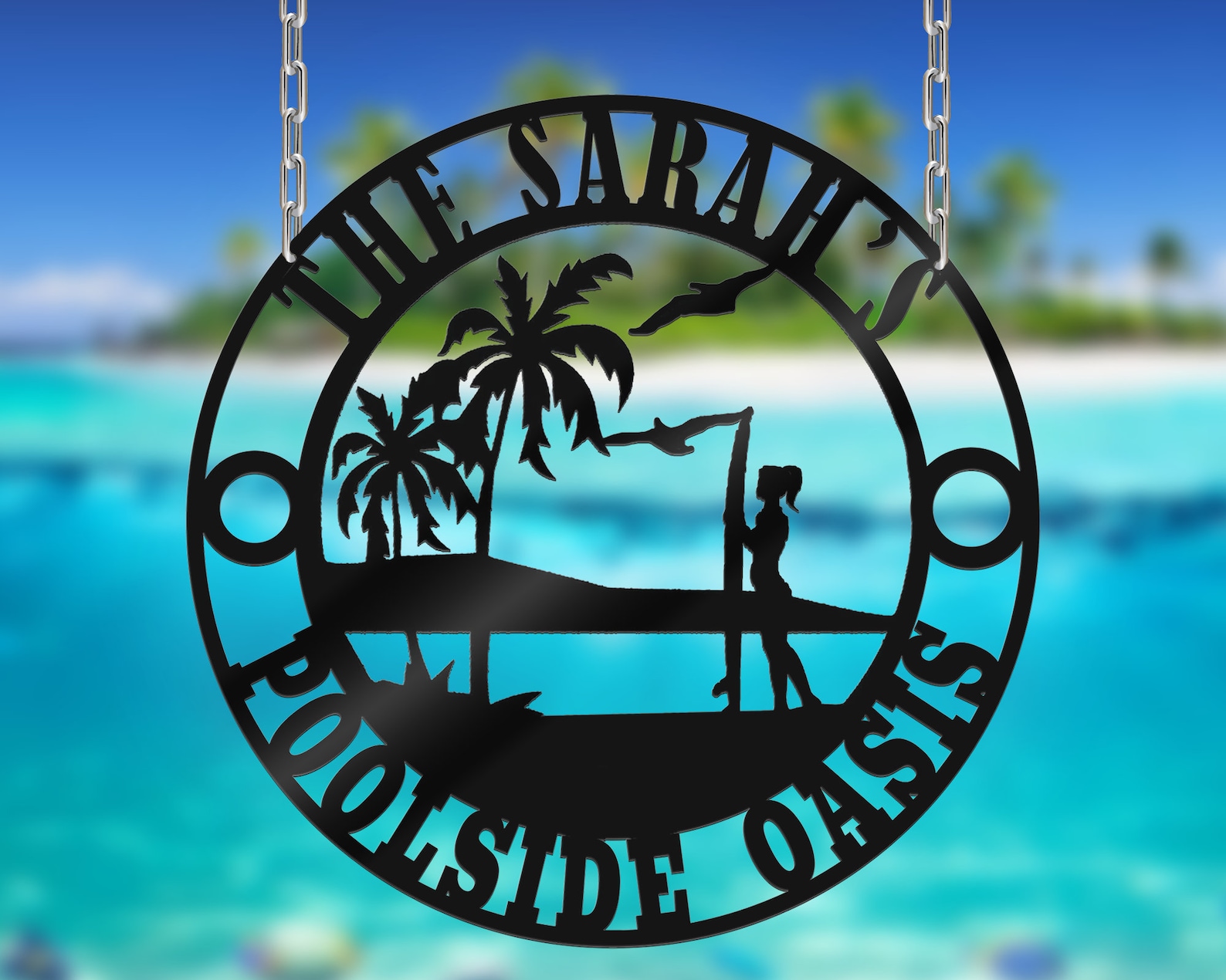 Be the first to review “Backyard Pool Family Name Metal Sign – Custom Wall Art”