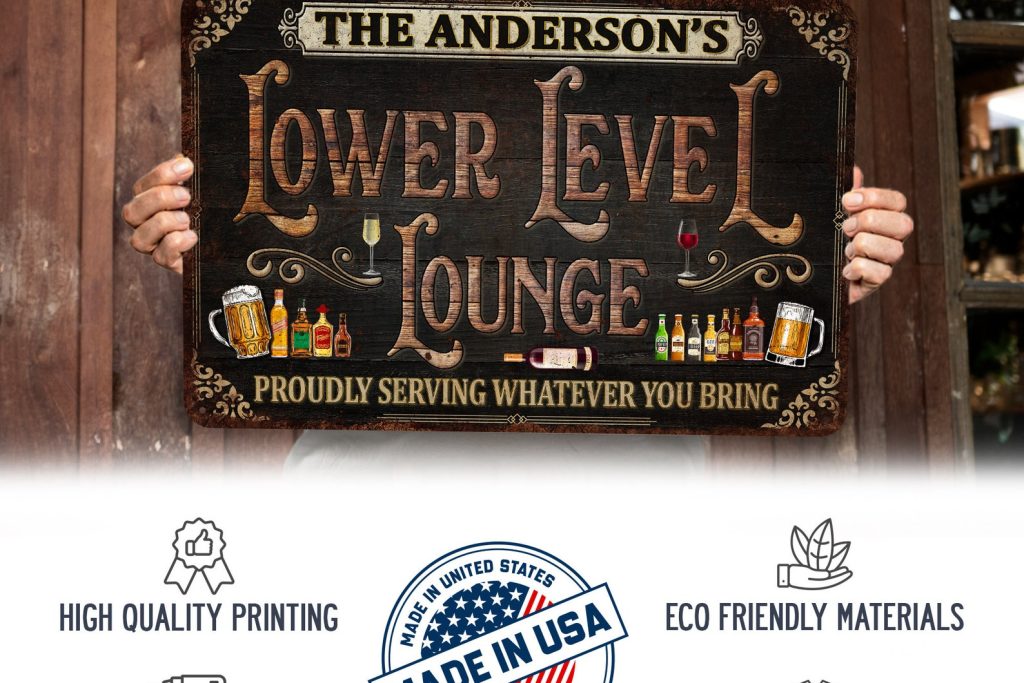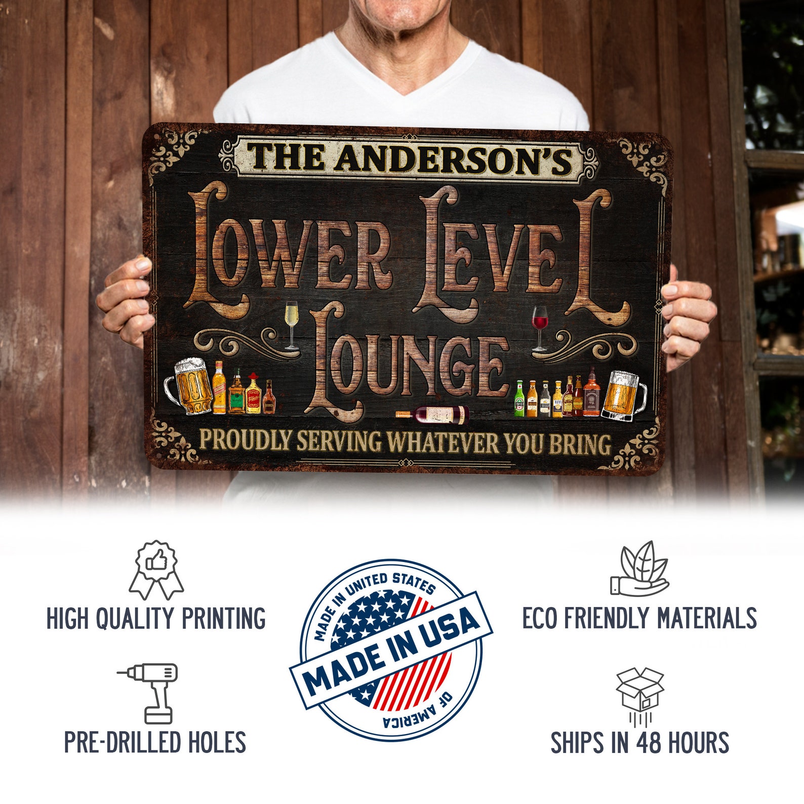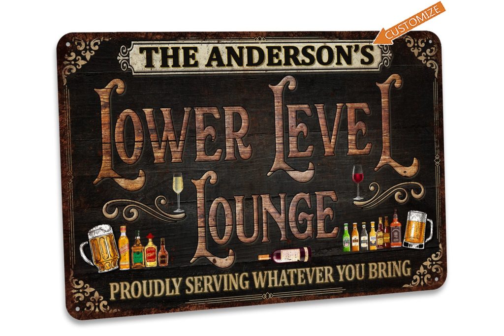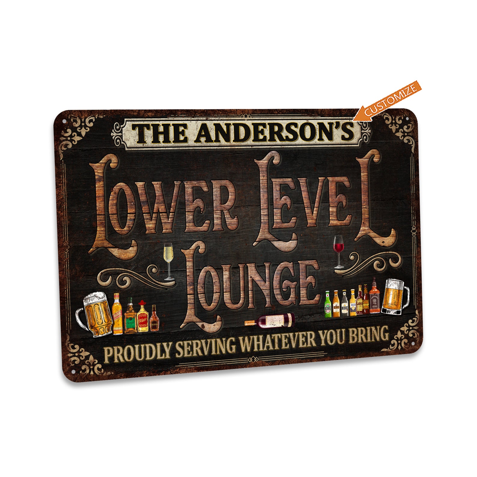 Basement Bar Sign Customizable Lower Level Lounge Sign Home Bar Decor Man Cave Wall Art Rustic Metal Sign Custom Gift For Men 108122002188