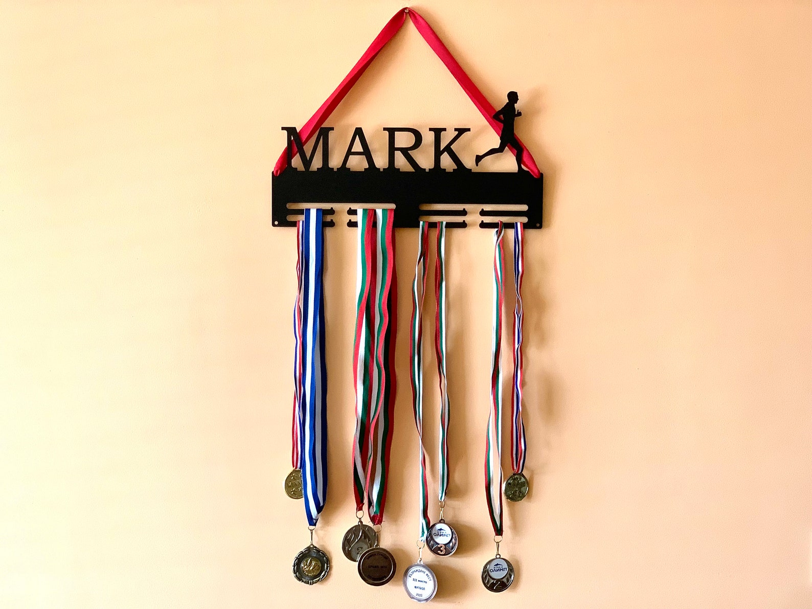 This personalized basketball medal holder with a custom name is the best way to display all that you have been collecting from the championship circuit.