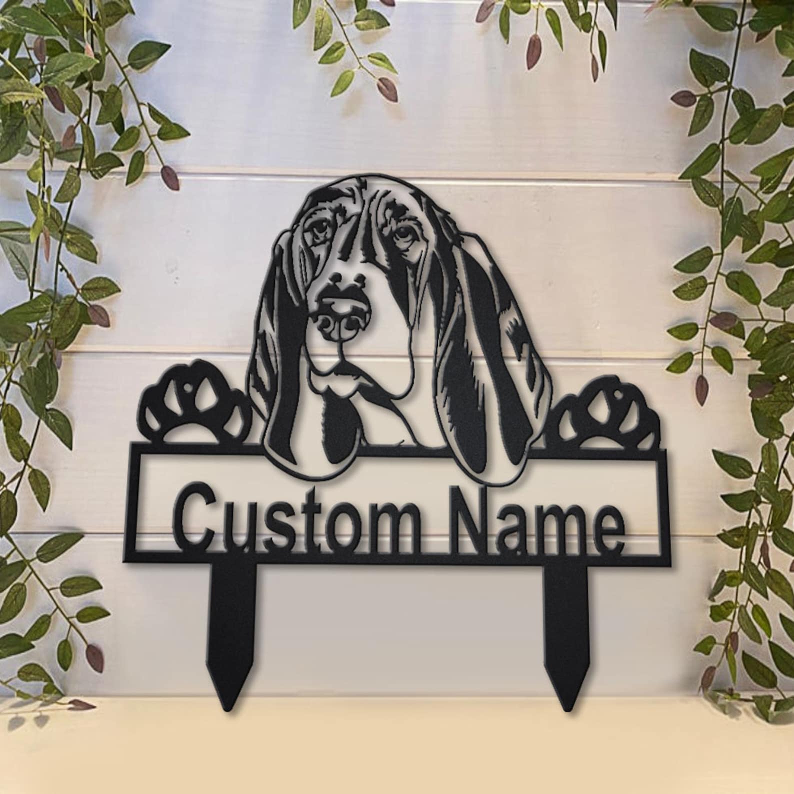 Be the first to review “Basset Hound Sign, Metal Yard Art, Dog Name Sign”