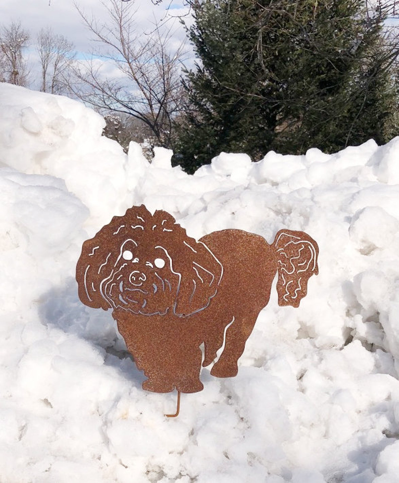 The rust powder coat option a great option for those who like the look of rust but without possible staining or the affects of real rust. The rust powder coat option is a great choice if you are purchasing the Bichon Frise wall hanging or if the pup will be hanging on vinyl or the exterior of home or white fence.