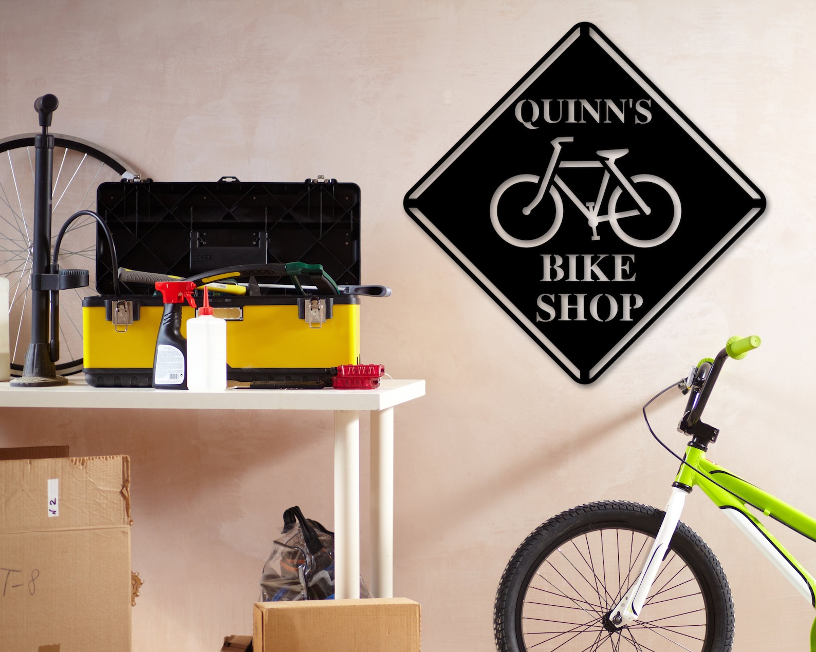 Be the first to review “Bike Shop Sign – Custom Metal Cyclist Decor”