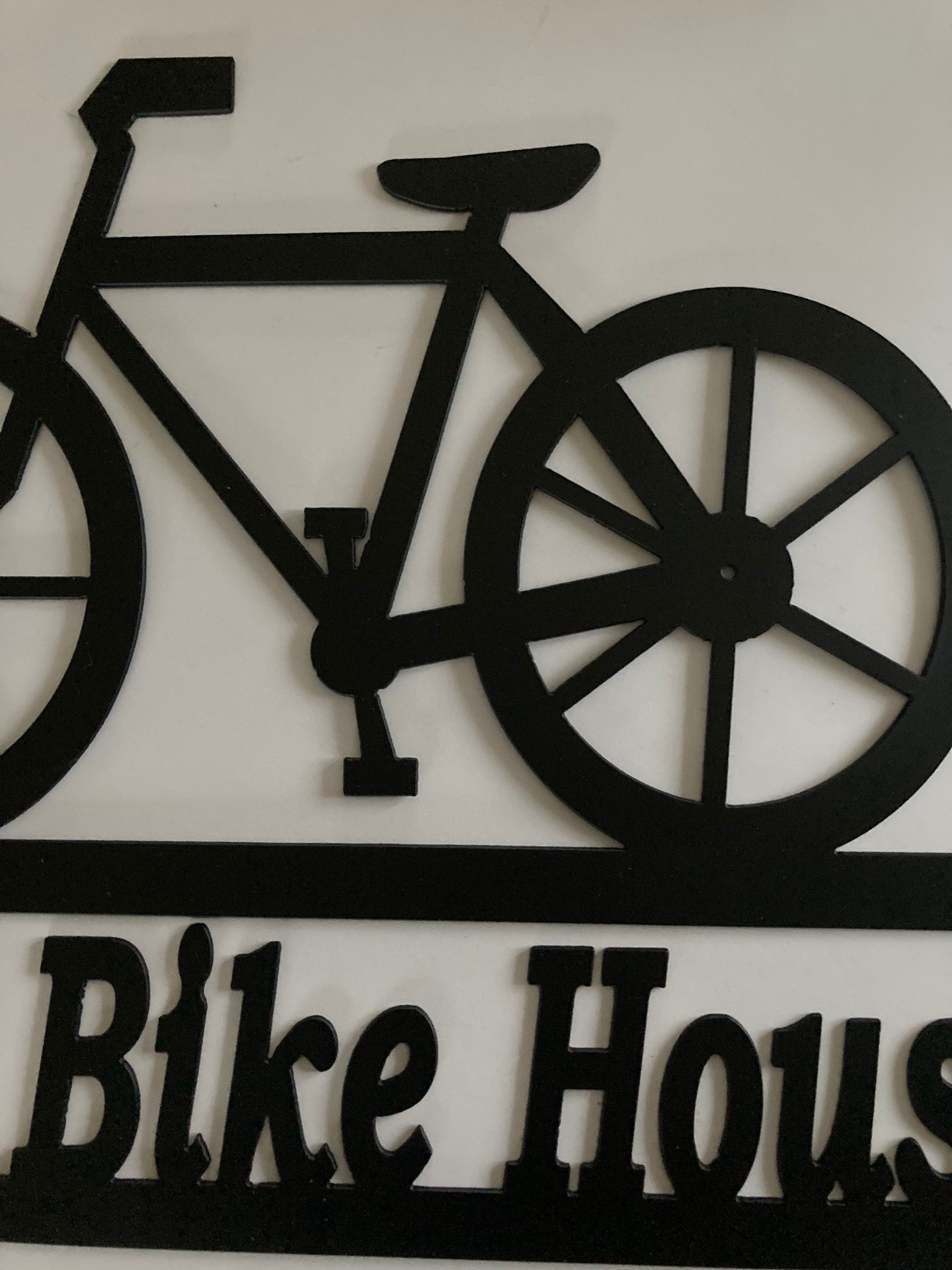 Metal Bike Decor with Address or Your Name. Approx. 14" x 21". Painted Black. Custom order yours. 14 gauge metal. Birthday, Christmas, or Housewarming gift. More Unique Metal Decor Available: