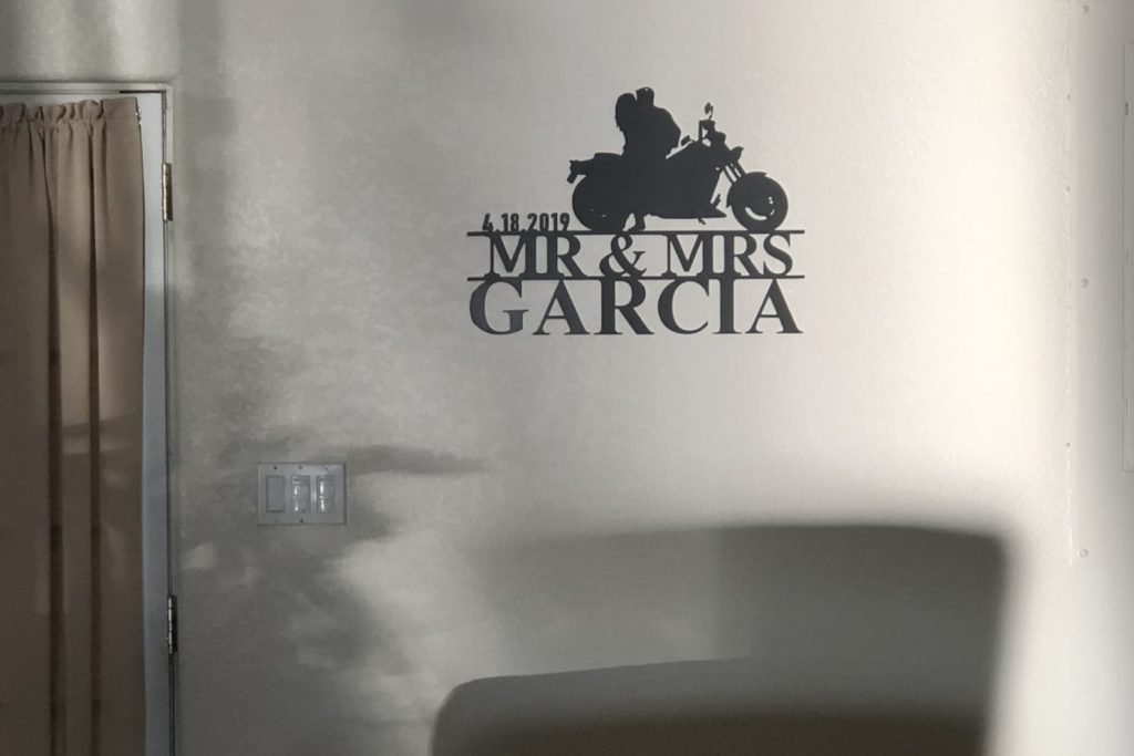 Sweet Ride9;s Last name sign is precision laser-cut. The Happily Married Biker Couple Personalized Wall Art brings together your most significantly meaningful bond into a design that truly speaks from the heart, bringing incredible meaning to any wall it adorns.
