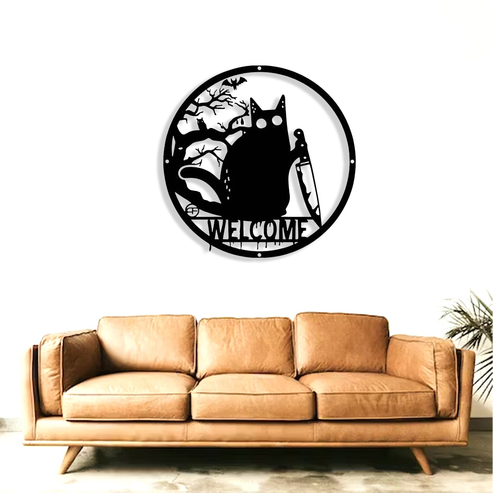 ***Black Cat Spooky Metal Sign | Black Cat Sign | Murderous Cat House Decor | Halloween Decor | Perfect for Halloween | 8-24 Inches***