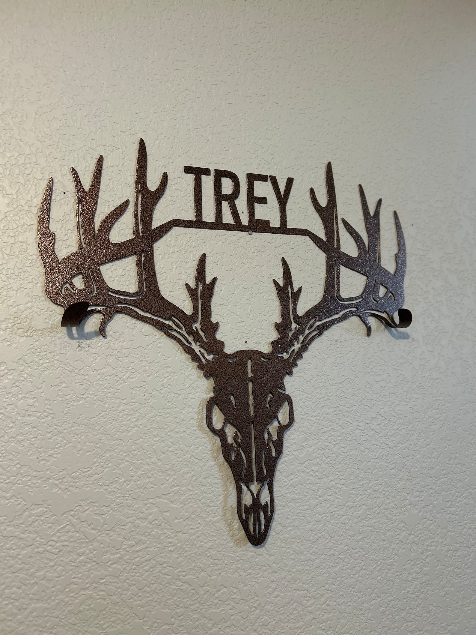 Enhance your hunting space with the Bow Hanger Metal Sign a practical and stylish addition for any hunting enthusiast. Made from durable metal, this sign features a sleek design with a deer skull and a handy bow hanger. It not only looks great but also serves a functional purpose, providing a secure spot to hang your bow.