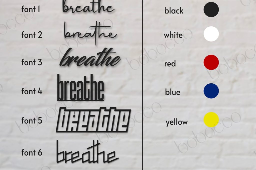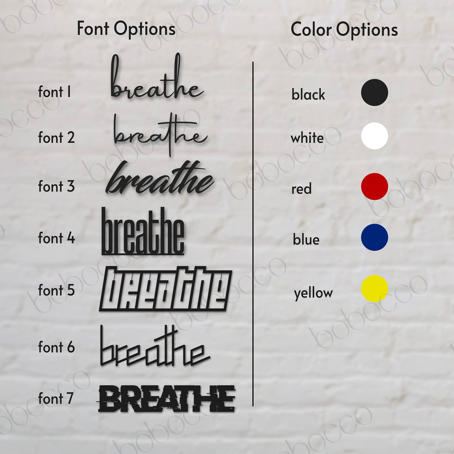 Our Metal Breathe Sign Home Decor is handmade using laser cut technology, ensuring that each piece is of the highest quality. It comes in five different sizes, ranging from 10 inches to 55 inches, and is available in five different colors, including black, white, red, blue, and yellow.
