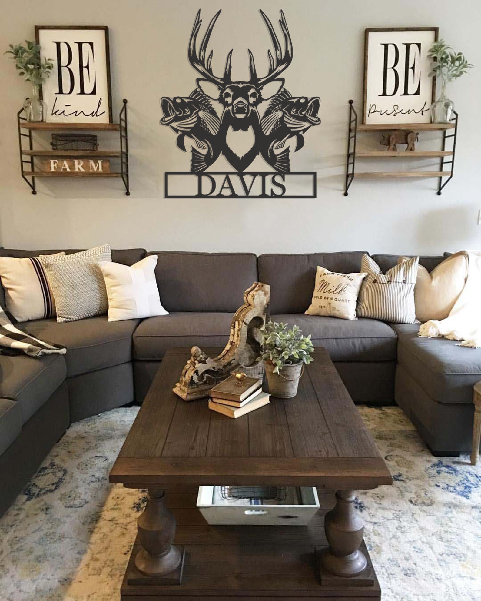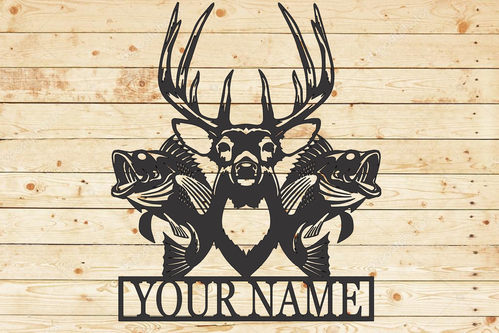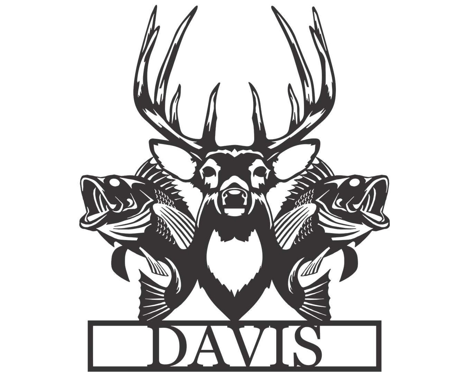 This Custom Buck and Bass Monogram is fully customizable. Just let us know what name you would like and we will do the rest. It is cut from 100% Steel and is powder coated black so it will never rust. Use indoors or outdoors. Made in the USA!