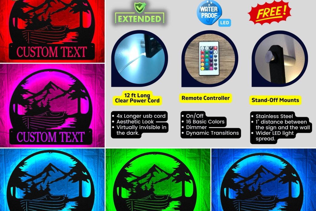 Canoe LED Sign – Personalized Metal Kayak Wall Neon Art