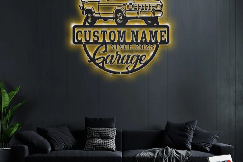 Car Garage Sign – LED Personal Metal Plaque Gift