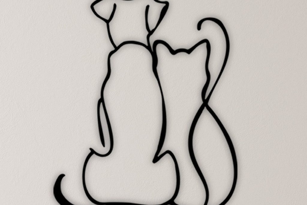 Cat and Dog Decor, Minimalist Line Art, Cat and Dog Home Decoration , Cat Sign, Cat and Dog Metal Line Art, Metal Wall Art, Outdoor Hanging