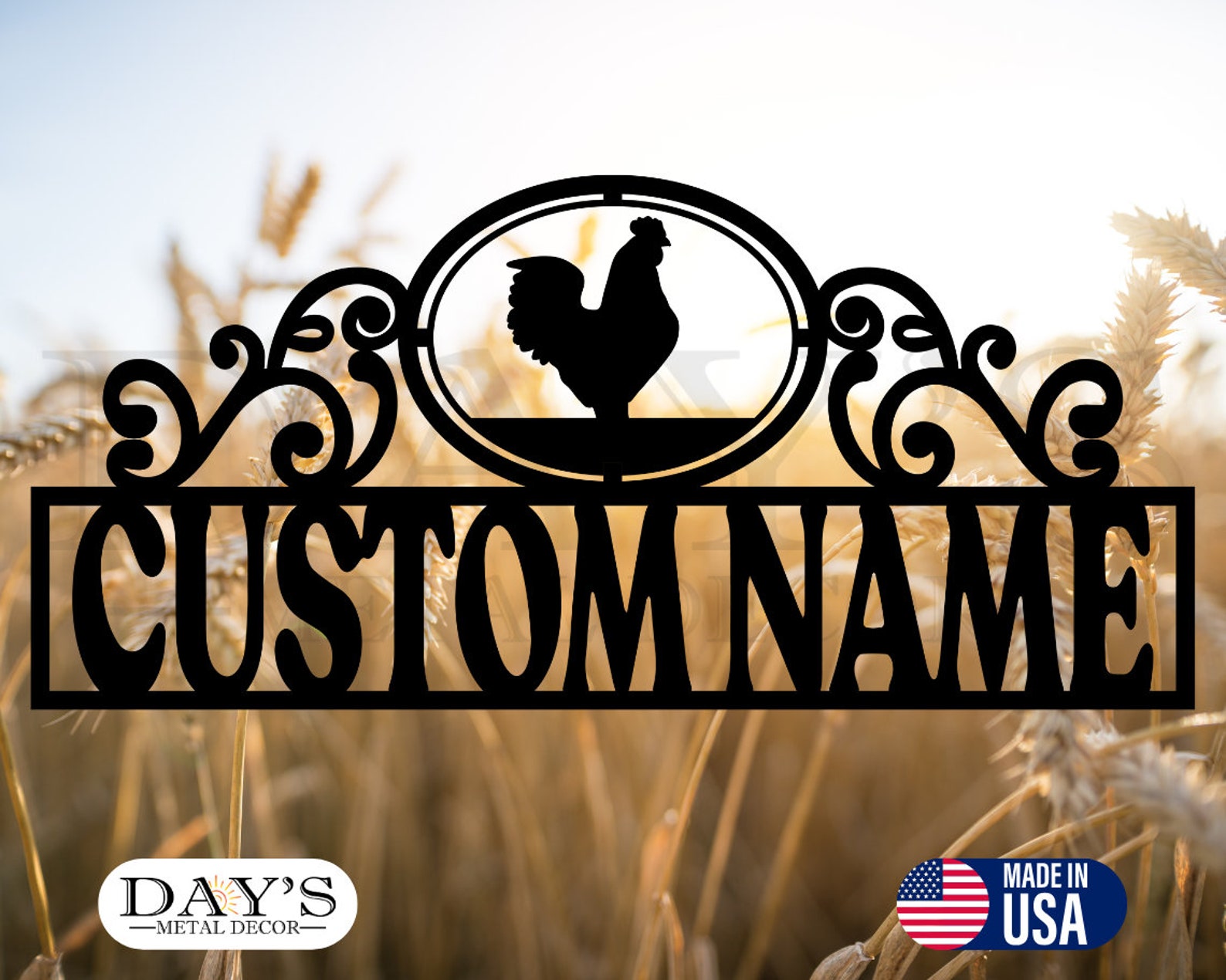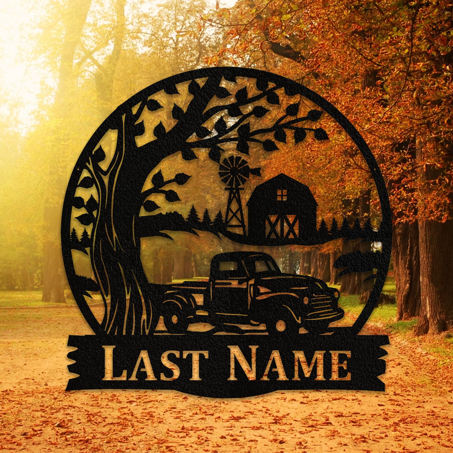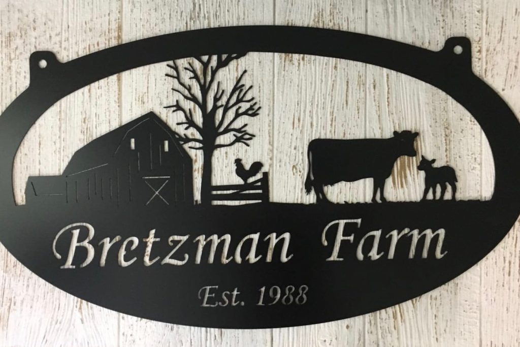 Rustic, personalized metal sign with barn scene . Measures 3 ftx 20" or 4ft by 26"or 30"x 16.6" tall, if you choose the smaller size. Powder coated black or beautiful copper acid and clear coated. LEAVE NOTE TO SELLER WITH NAME AND OR EST. DATE YOU WANT ON SIGN,. PROOF PROVIDED