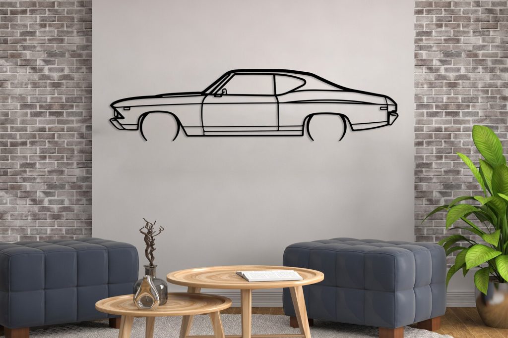 Chevelle SS Metal Car Silhouette, Classic Automotive Decor, Chevelle SS 1969 Garage Sign, Father Gift, Metal Car Line Art, Large Car Art