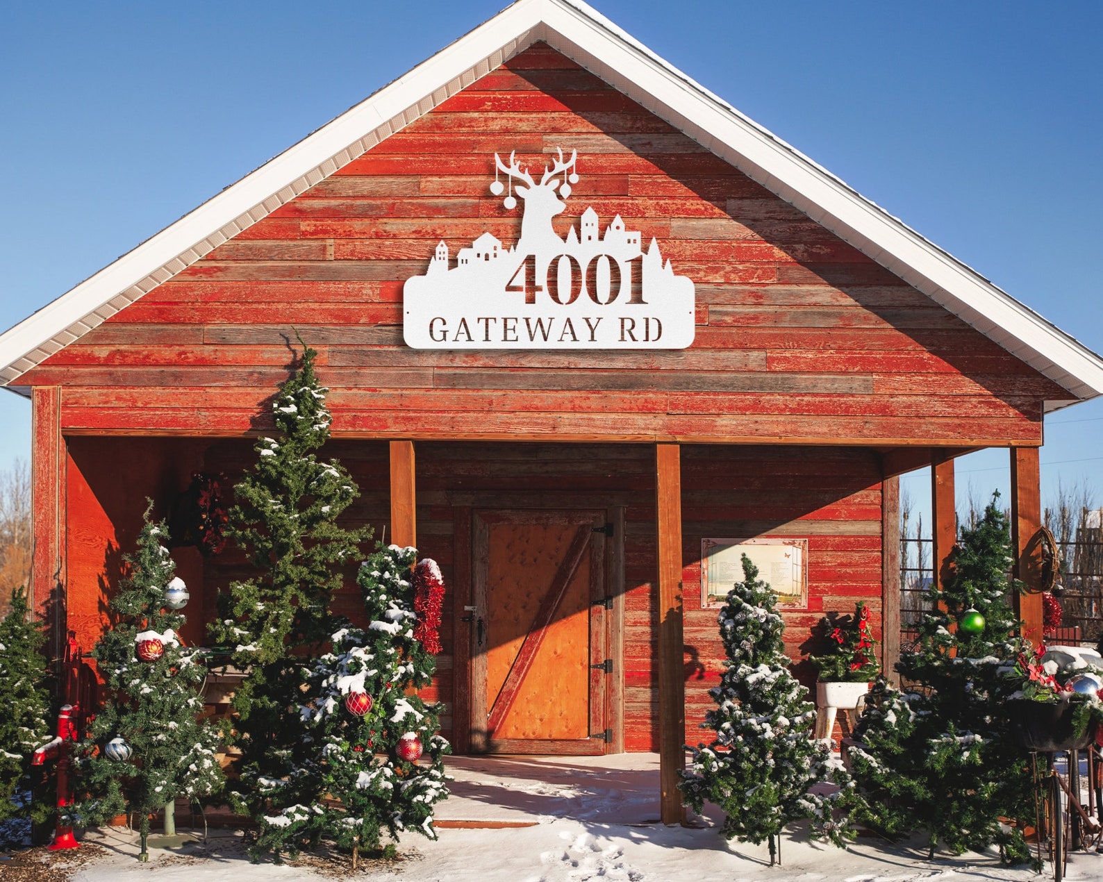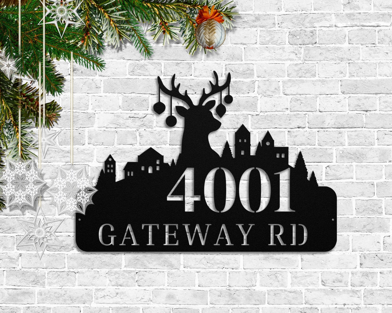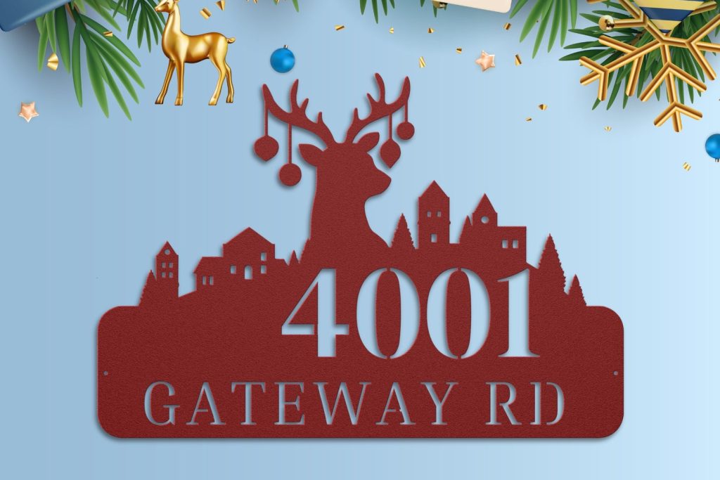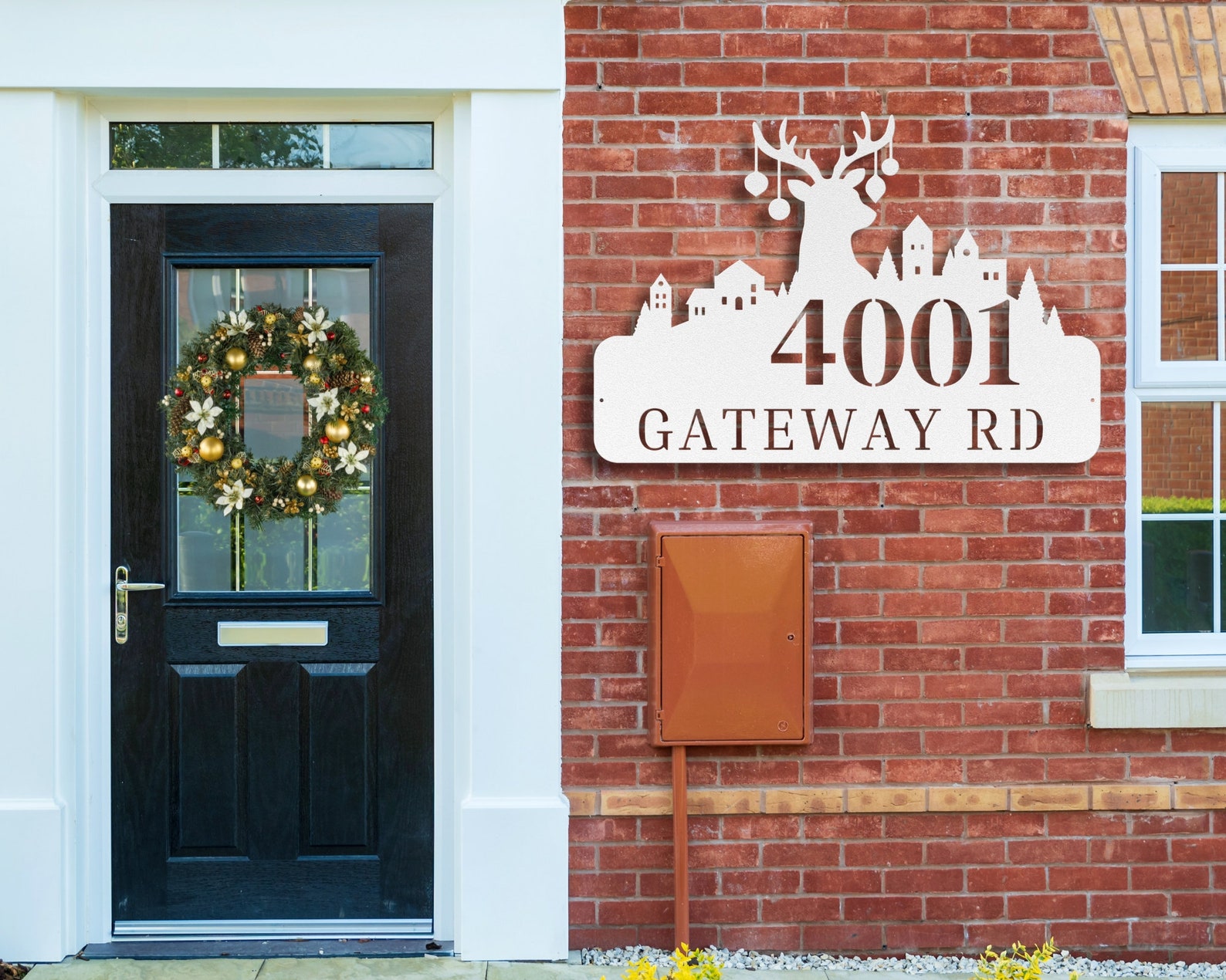 Add a touch of rustic charm to your home with our Personalized Address Sign with Deer. This custom metal house number sign is handcrafted with precision and care, making it a unique and eye-catching addition to your outdoor decor. Featuring beautifully laser cut address plaques and a customizable name sign, this piece is perfect for adding a personal touch to your house. Whether you9;re looking for a thoughtful housewarming gift or a unique Christmas present, our Personalized Address Sign with Deer is sure to impress.