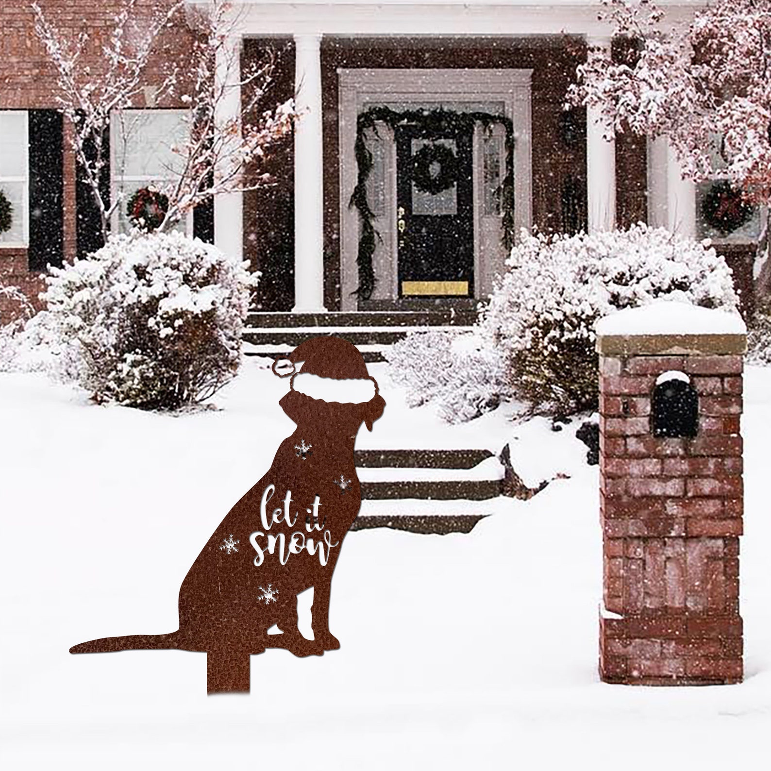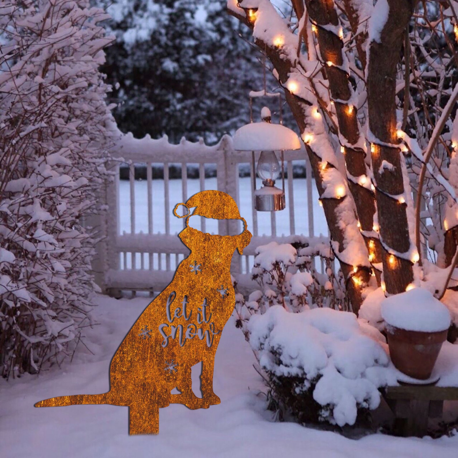 Christmas Dog Sign, Christmas Decor, Labrador Metal Sign, Rusty Metal Stake, Vintage Sign, Holiday Gift, Yard Decoration, Christmas Yard Art, Meaningful Christmas decorations, Christmas gifts, family gifts, Labrador pet lovers, metal signs for animals.