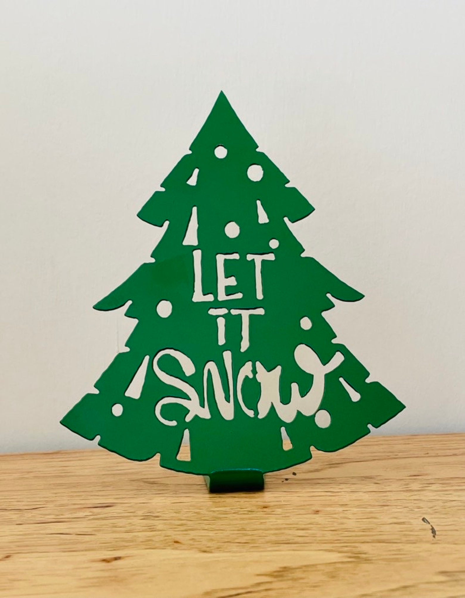 This Standing metal Christmas Tree is a Fullers Fabrication original! It was designed in house! Comes equipped with a small tab allowing it to stand on its own. This piece makes the perfect addition to your Christmas/winter decor. It is cut out of a strong 16G carbon steel and finished with a durable powder coat. This Snowman is high quality and will last for years to come! It is the perfect mantle piece.