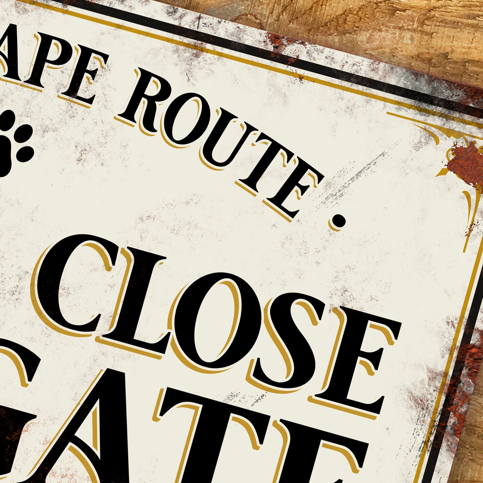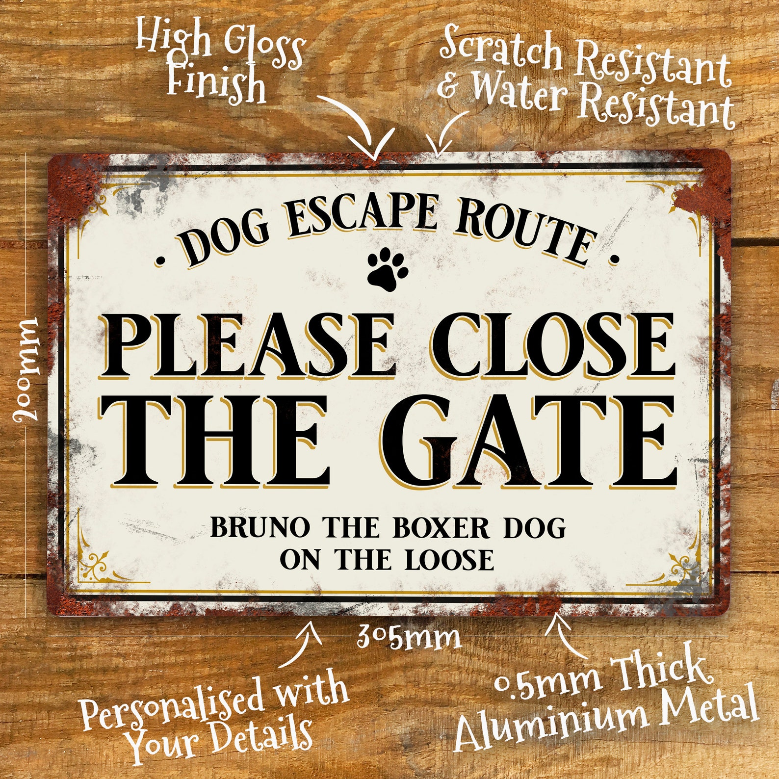 Personalised Close the Gate Sign Dog Warning Metal Wall Door Fence Decor Garden Accessory, Vintage Retro Waterproof Aluminium, 200mm x 305mm