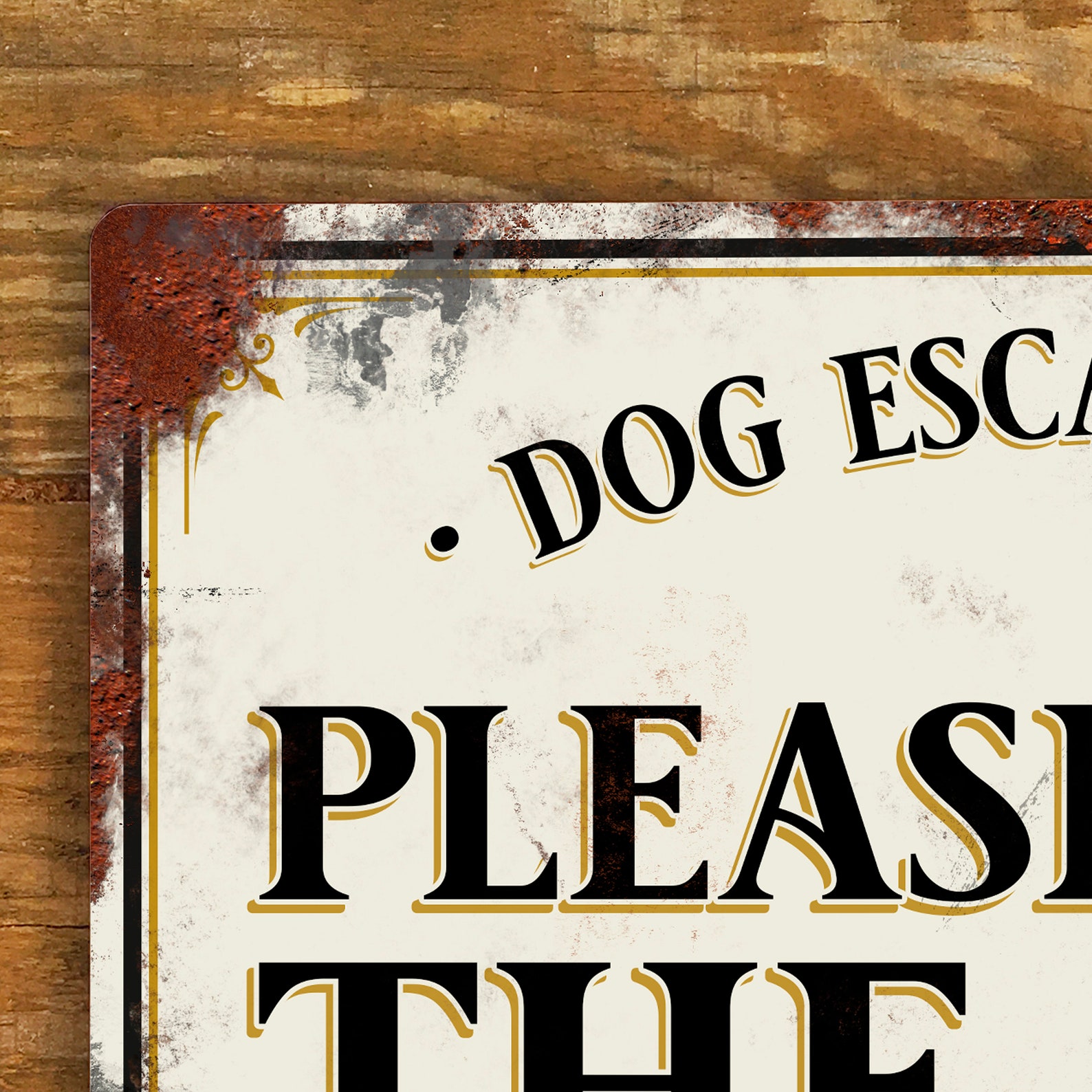This Vintage style metal Close the Gate sign is a great addition to any Outside Garden Gate, Wall or fence to encourage to keep your pet Dog safe. Designed in Retro Classic Style, the sign is made from aluminium metal and is printed using dye sublimation inks which makes it completely waterproof. The design has been designed with the rust effect as seen. This is not real rust. It is an effect created within the artwork.