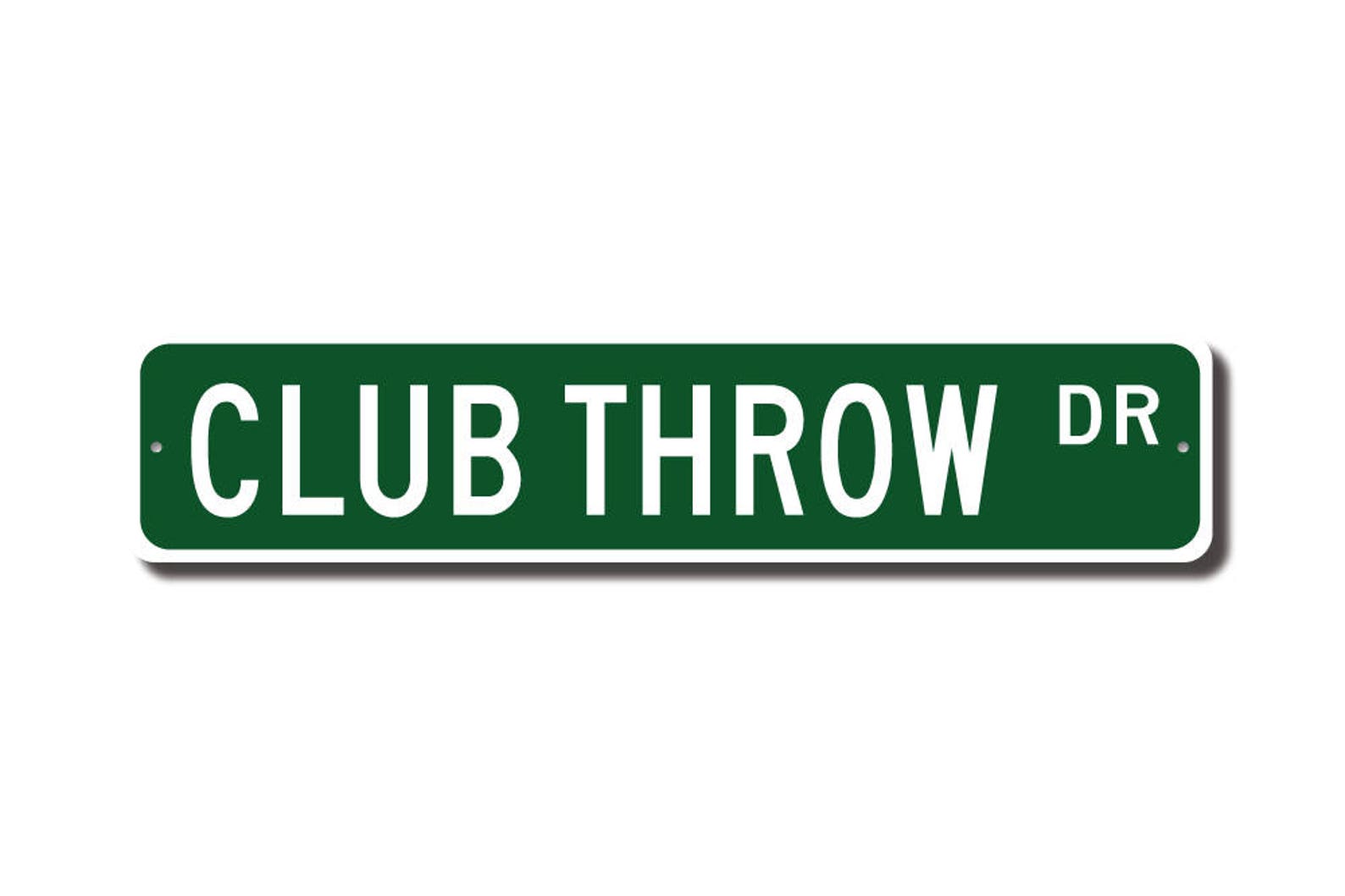 Club Throw lovers check out this awesome street sign! This will make the perfect piece for any Club Throw fan, or maybe you are a Club Throw lover looking for a cool decor piece ! Made of premium aluminum it will stand the test of time. This sign will look great in any room, home den, cave, or office ! Get this sign for your favorite Club Throw aficionado !