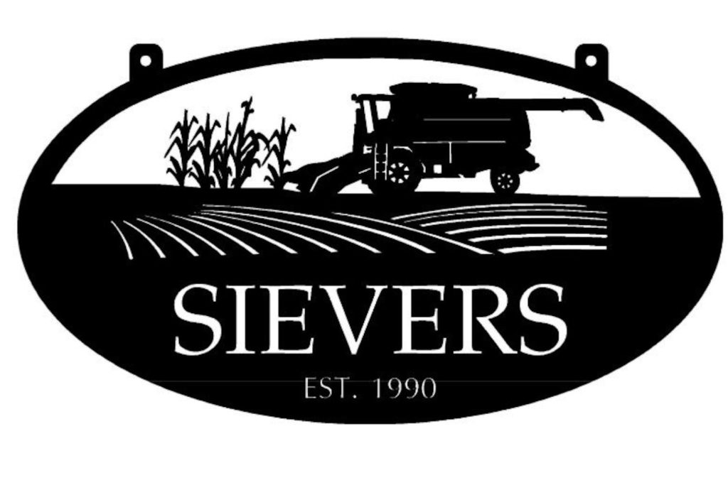 Rustic, personalized metal sign with barn and combine and cornfield scene . Measures 36" x 19". Or 48"" or 3"
