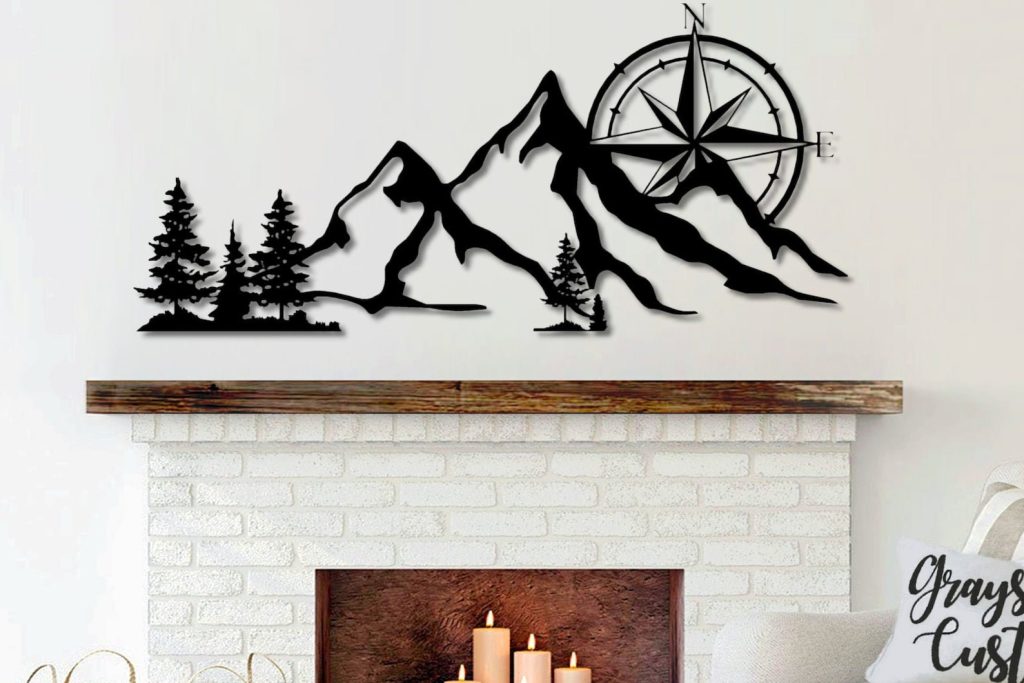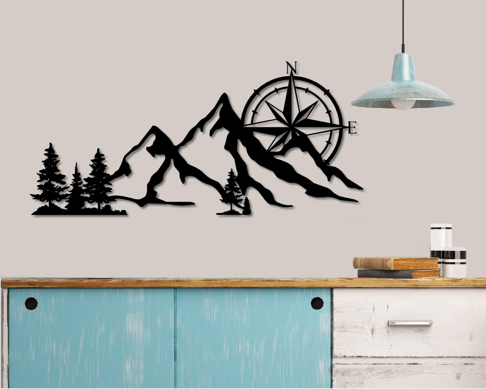 Be the first to review “Compass Rose Sign, Mountain Scene, Farmhouse Decor”