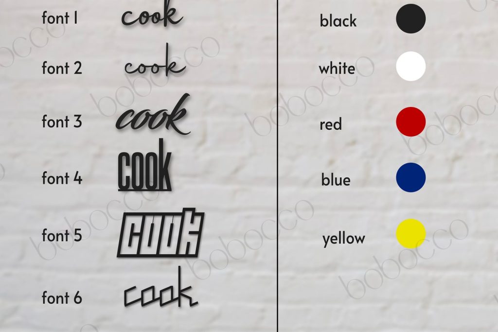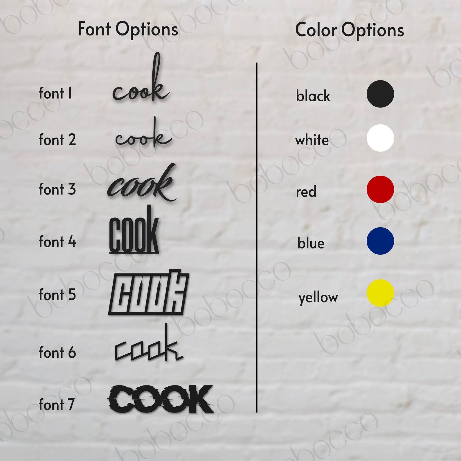 Made from high-quality metal and laser cut for precision, our Metal Cook Sign is available in five different sizes and five different colors, so you can choose the perfect option to suit your space and style. Whether you9;re looking for a small accent piece or a bold statement piece, we9;ve got you covered.