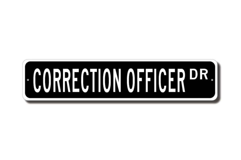 Correction Officers check out this awesome street sign! This will make the perfect piece for any Correction Officer or maybe you are a Correction Officer looking for a cool decor piece. Made of premium aluminum it will stand the test of time. This sign will look great in any room, home den, cave, or office! Get this sign for your local Correction Officer !