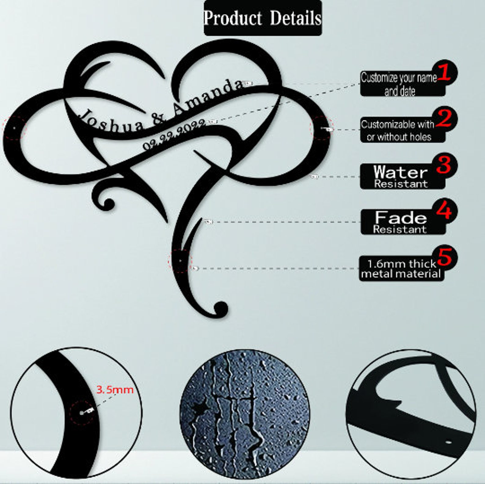 Create Memories: Cherish special moments with this unique and heartfelt gift. Our personalized metal infinity heart sign is not only a beautiful decoration but also a symbol of love and appreciation for the people you care about.