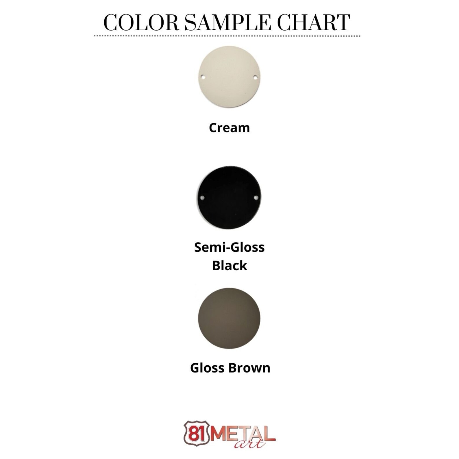 Darker colors like black will have white text. Light colors like cream will have a black decal text.