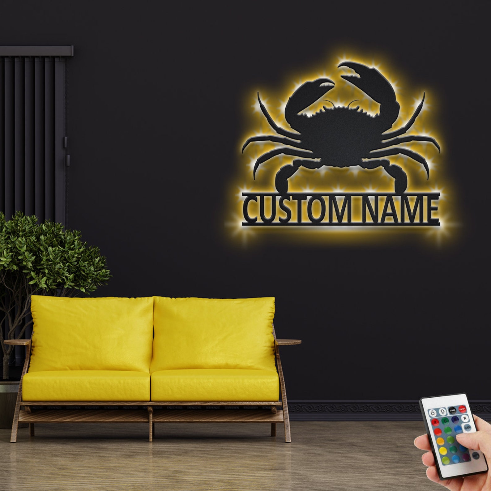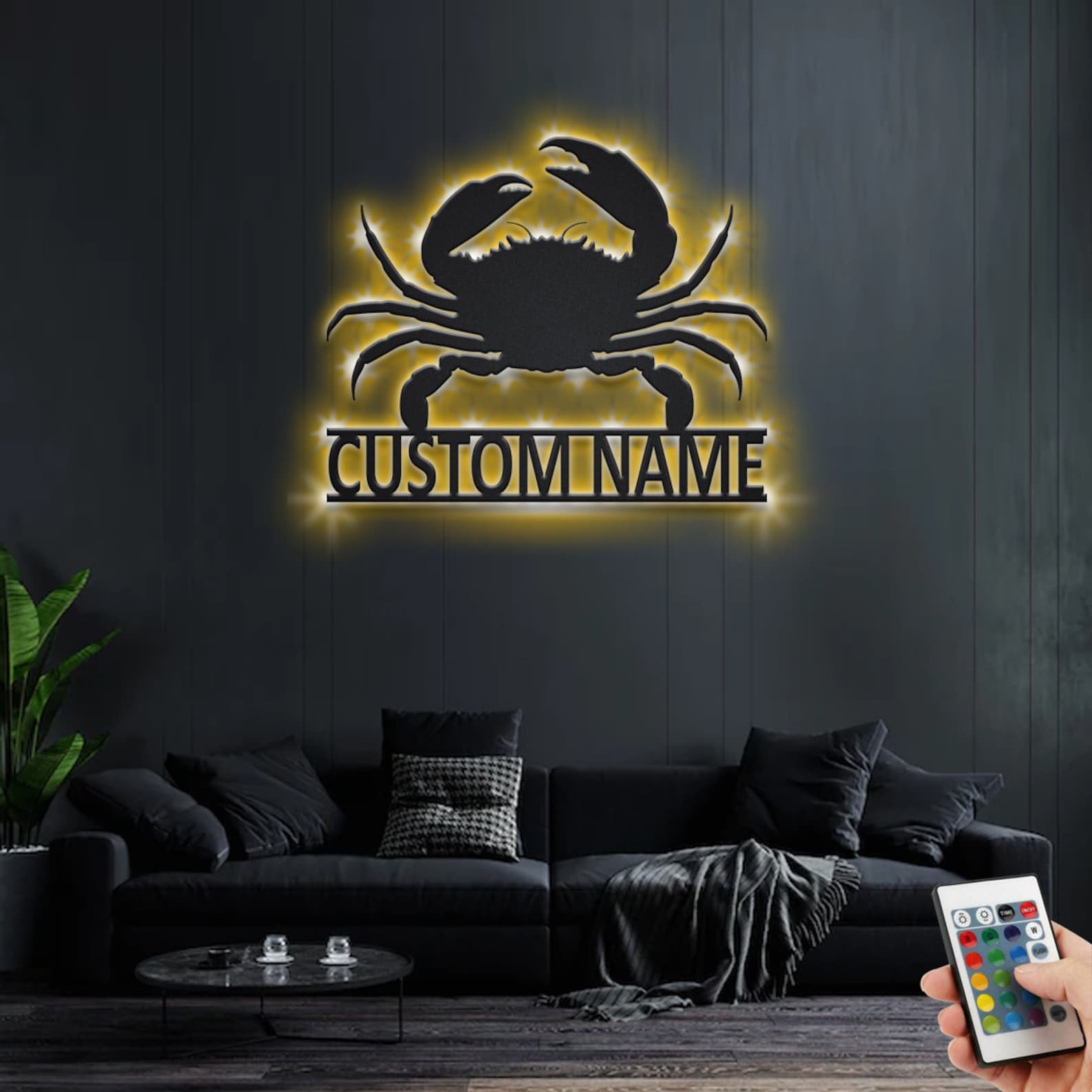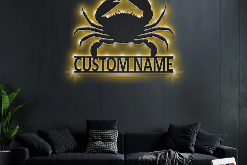 Crab Metal Wall Art with LED – Personalized Name Sign