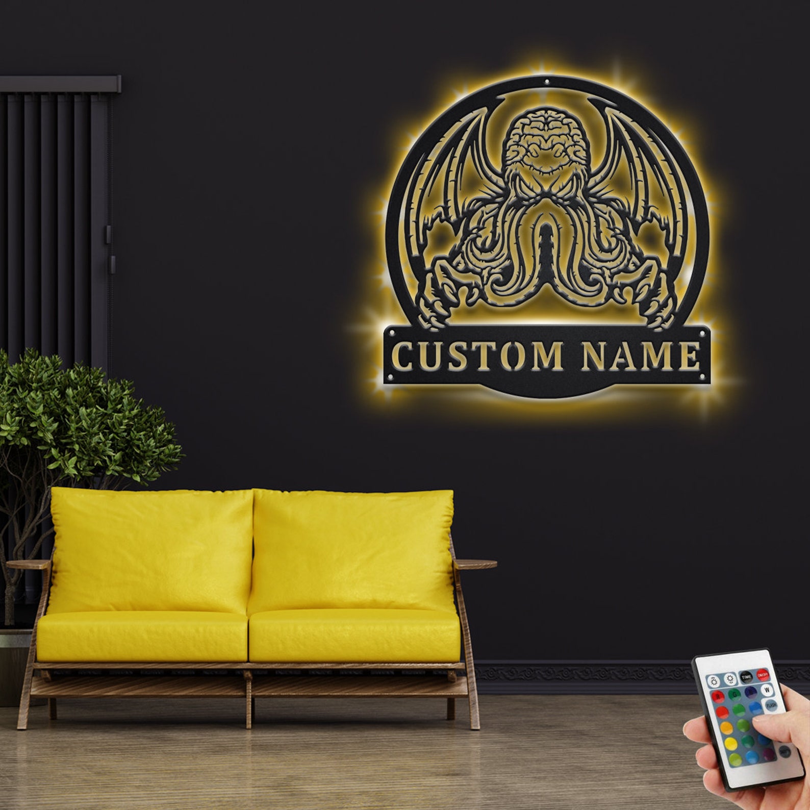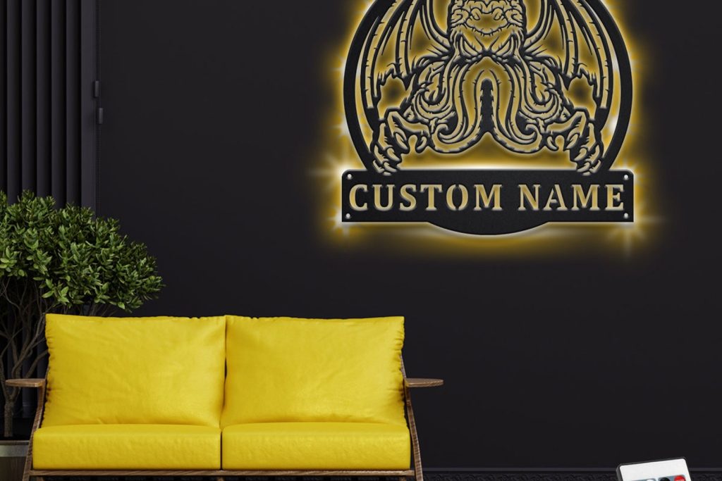 Cthulhu Metal Wall Art with LED – Custom Name Sign