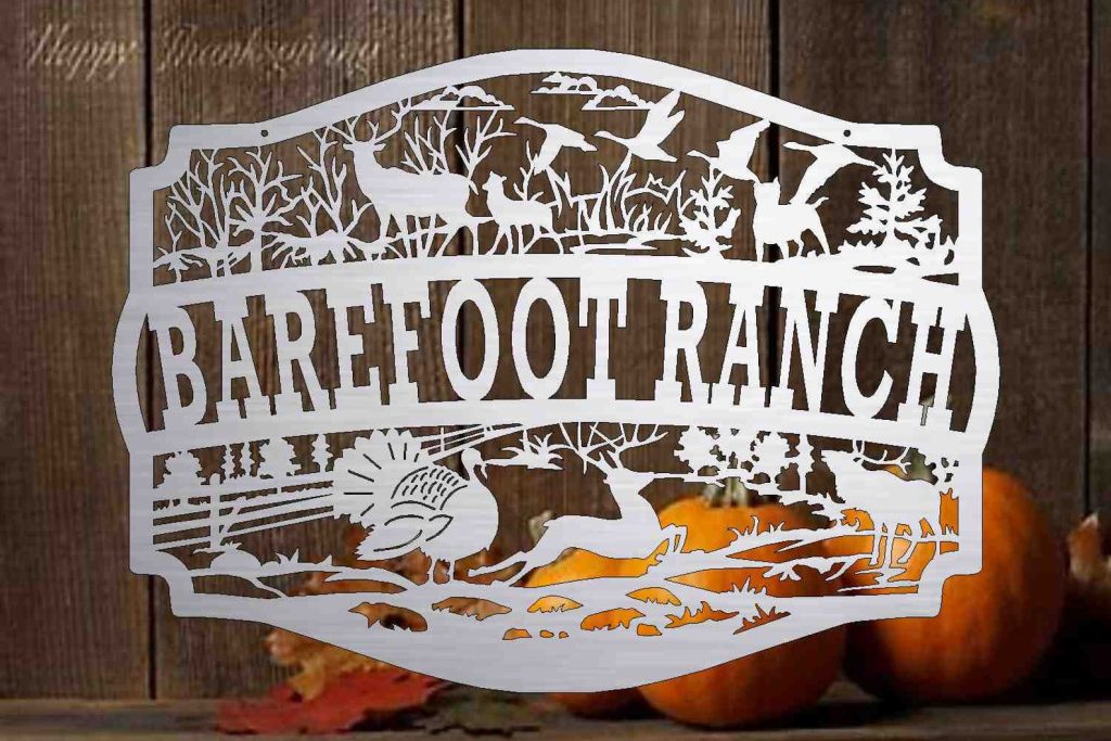 Custom Metal Sign with wildlife scene customized with your name 30938 39; wide personalized metal sign with wildlife scene .Incl with the price is customizing with your name.Our finish is a baked on powder coat for a very long lasting durable finish. This will be made from heavy 10ga steel.PLEASE LEAVE NOTE TO SELLER WITH NAME AND OR EST. DATE YOU WANT ON SIGN