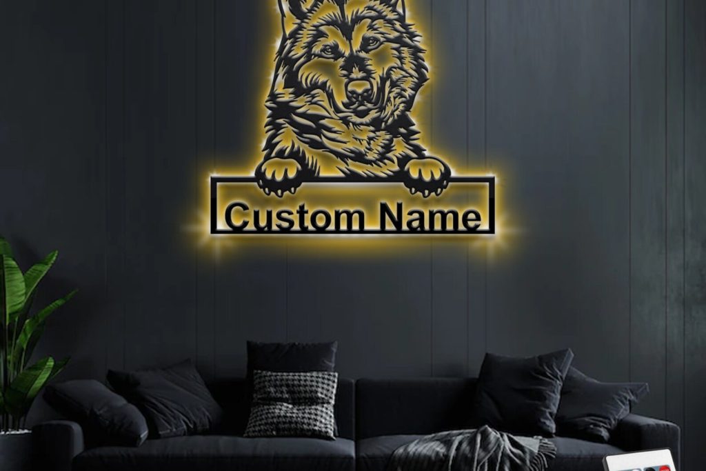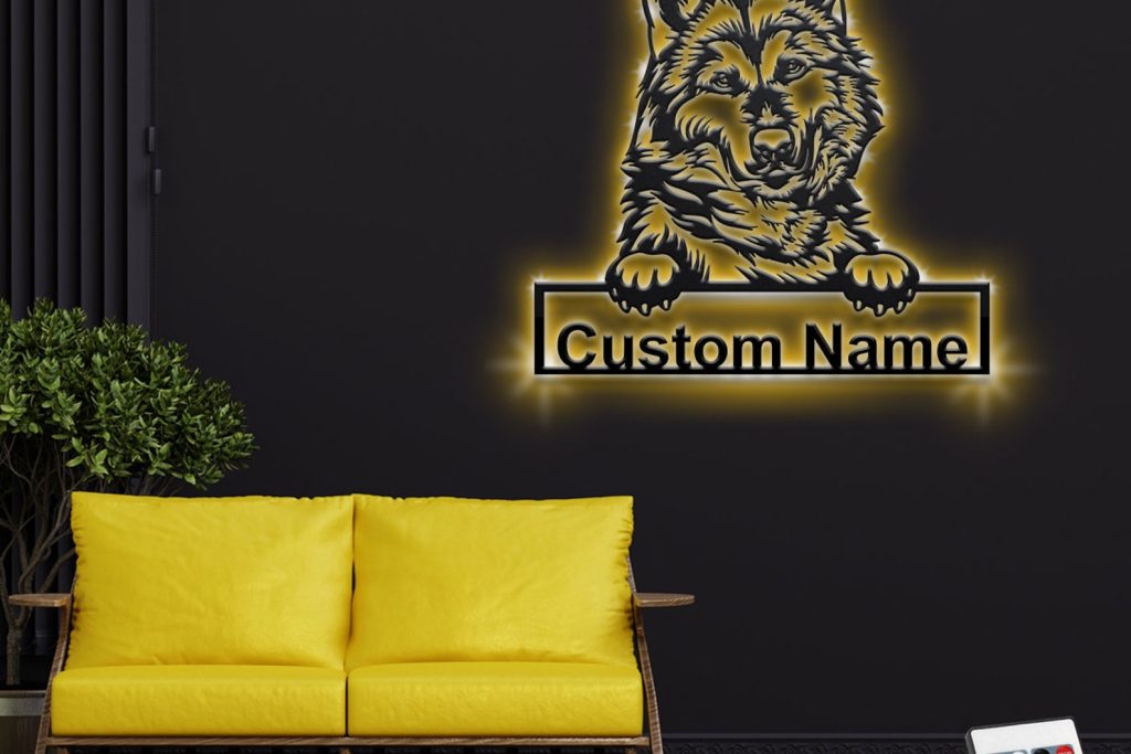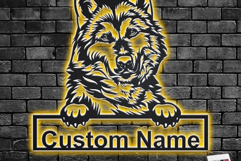 Custom Alaskan Malamute Metal Sign with LED – Dog Room Decor