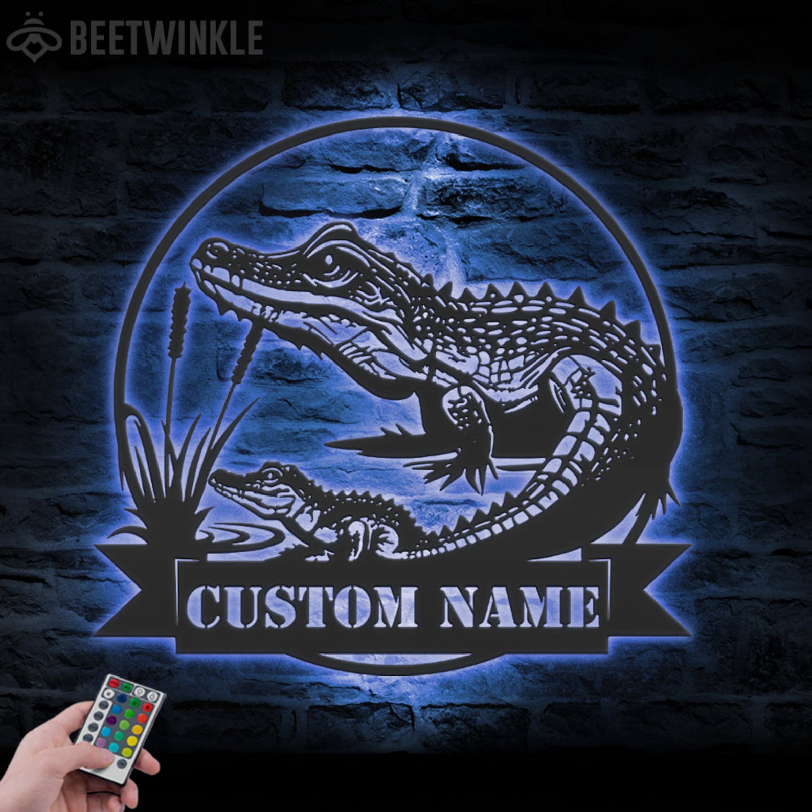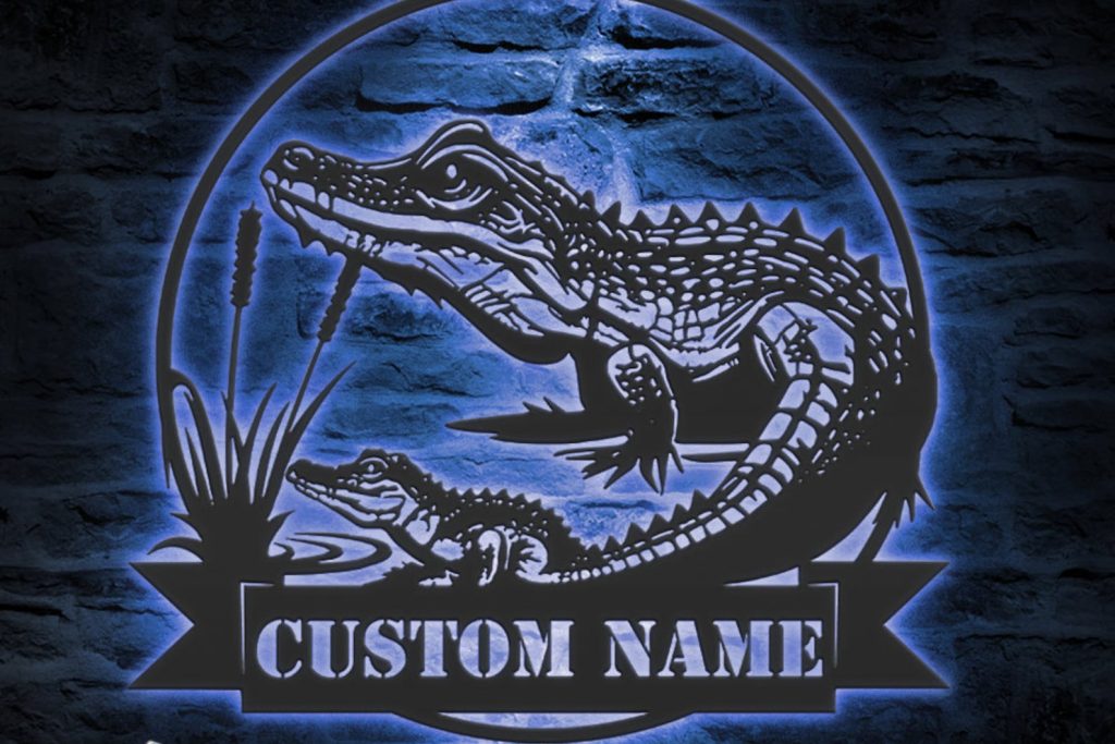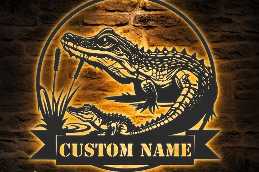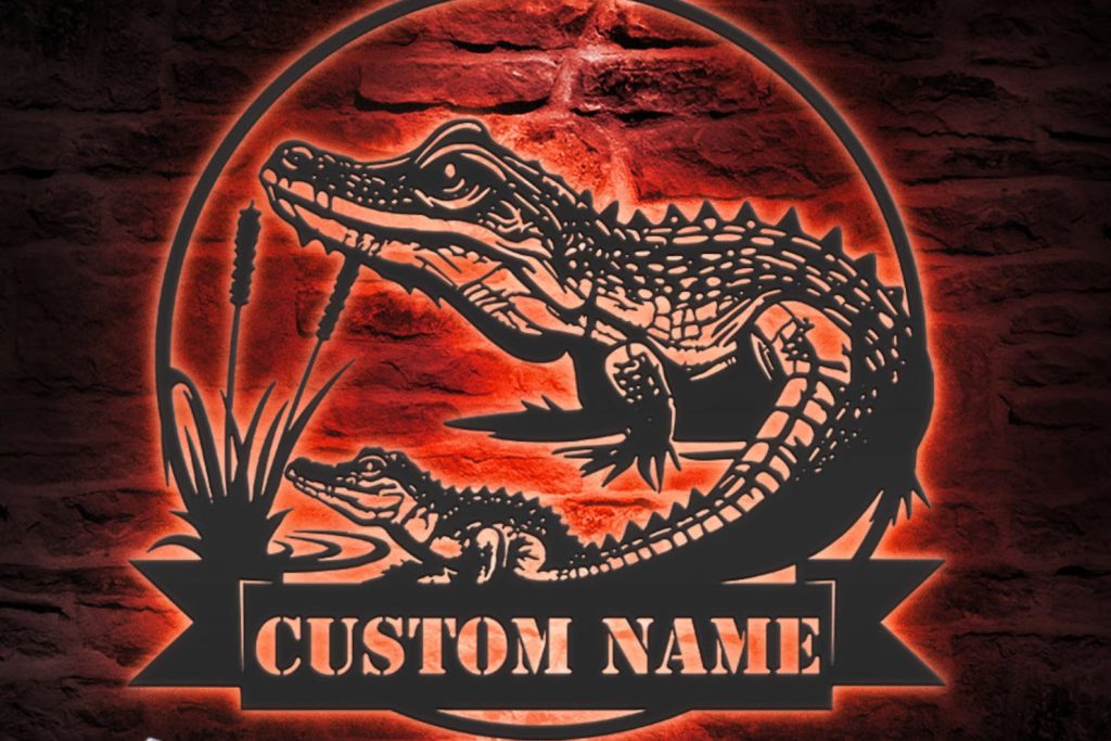 Custom Alligator LED Metal Art – Mother & Child Sign