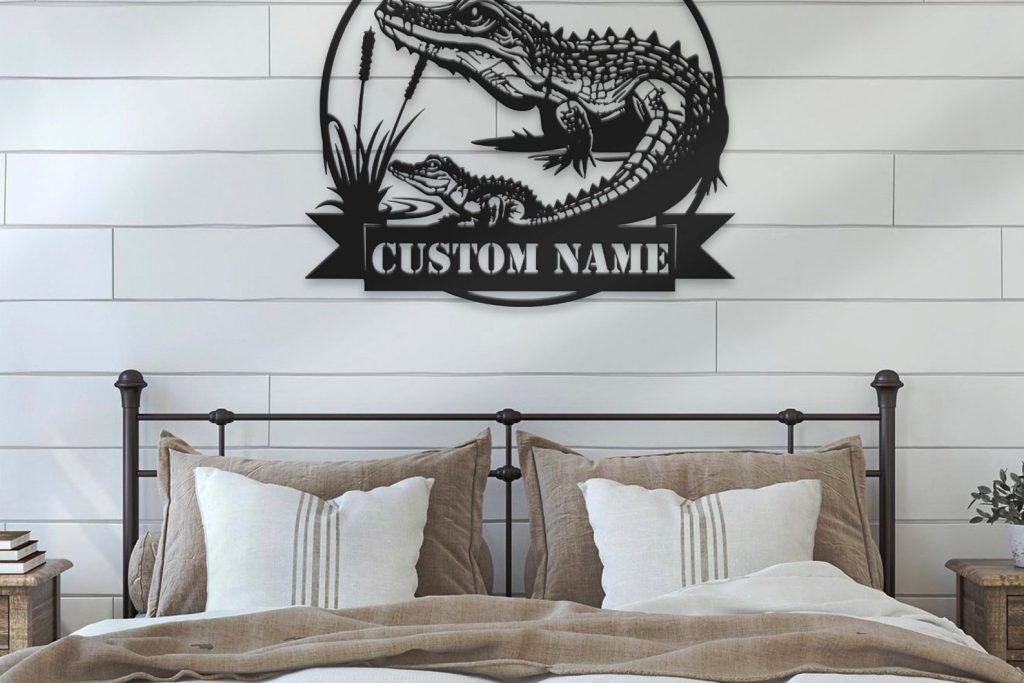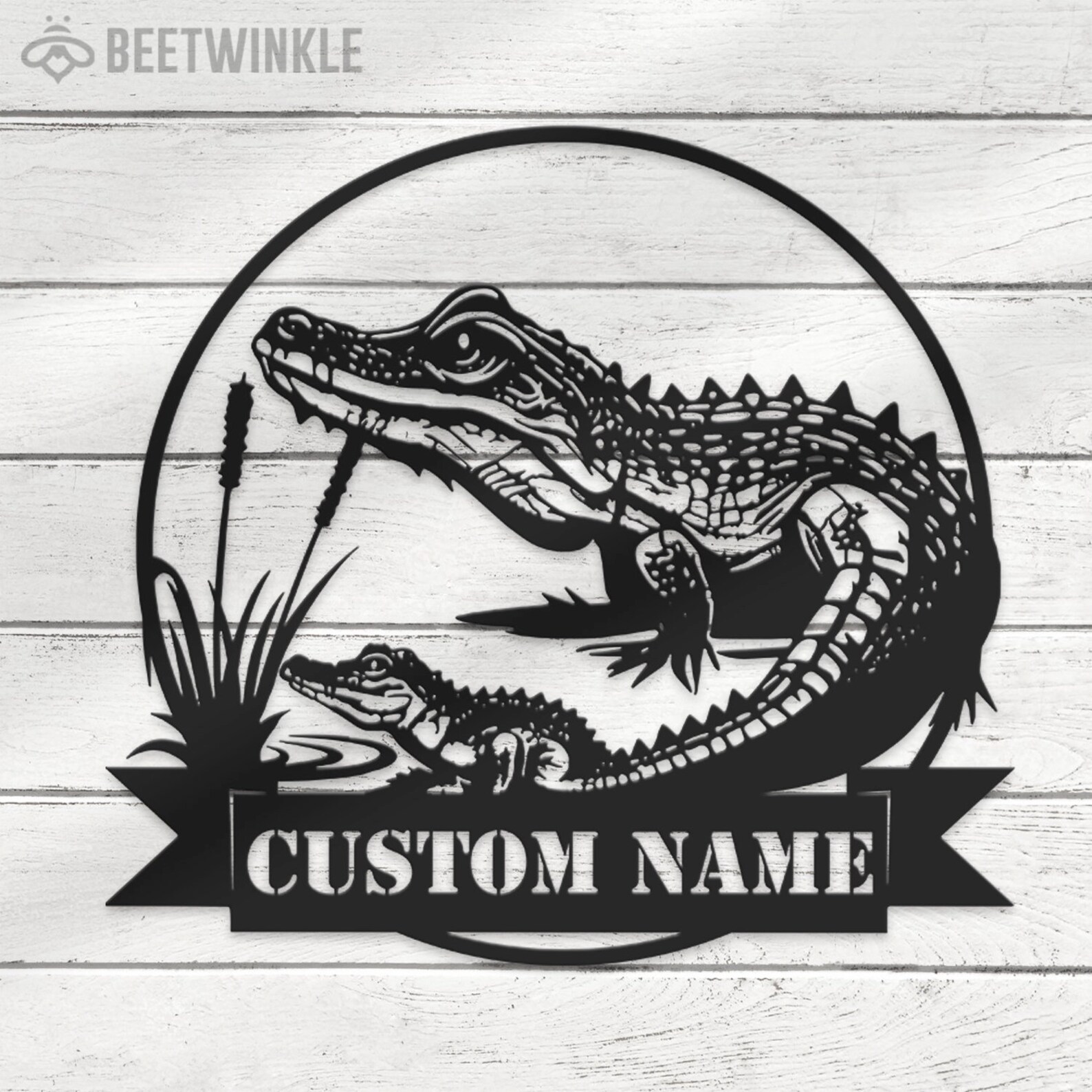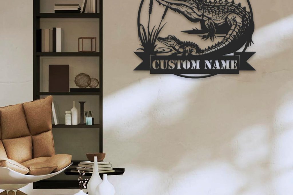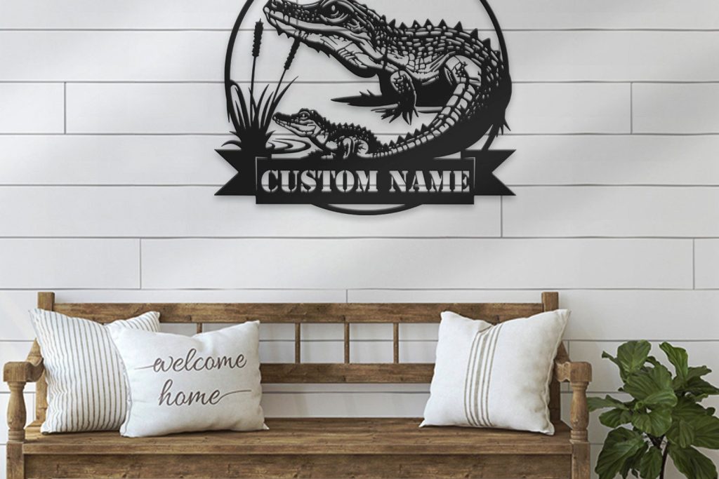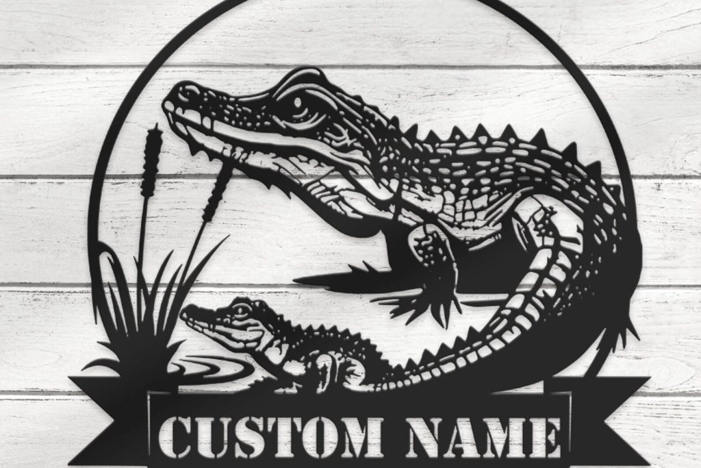 Custom Alligator LED Metal Art – Mother & Child Sign