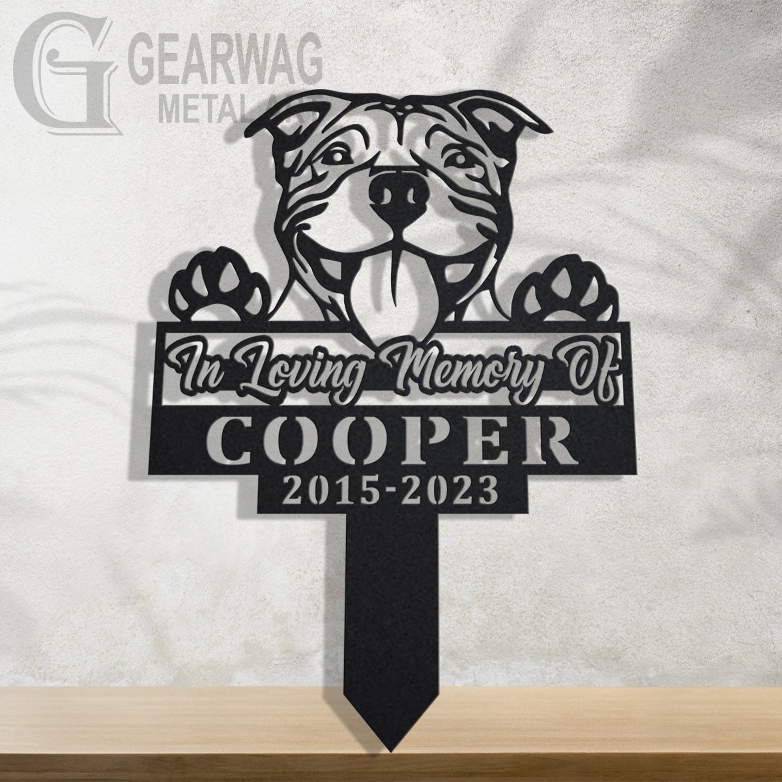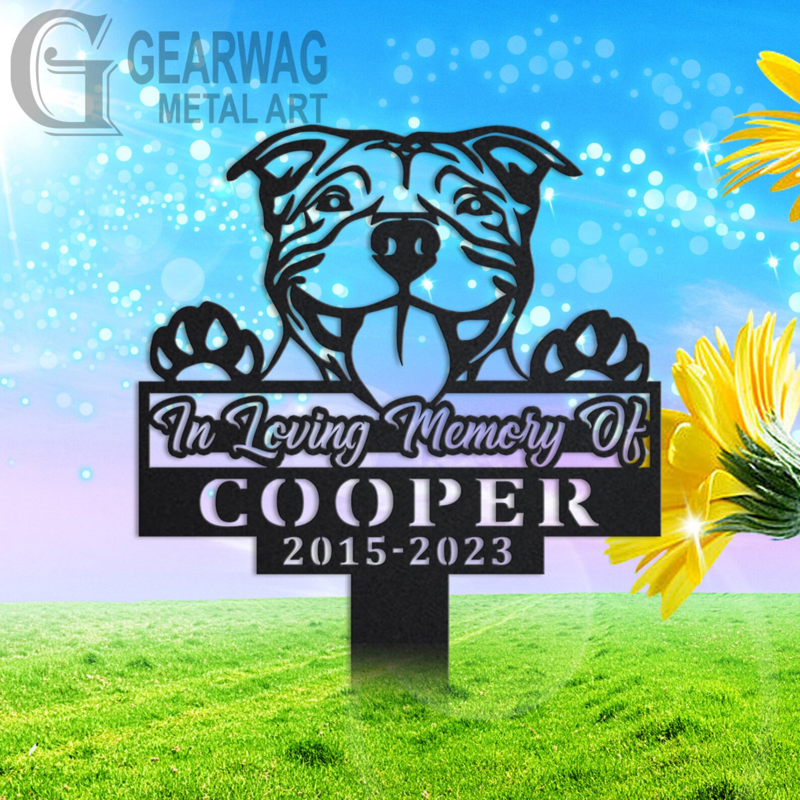 Custom American Pit Bull Memorial Metal Stake – Outdoor Decor