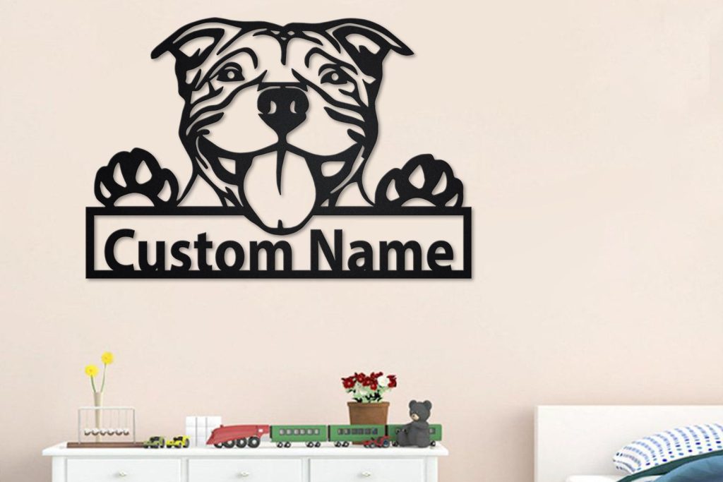 Custom American Pit Bull Metal Sign with LED – Dog Room Decor