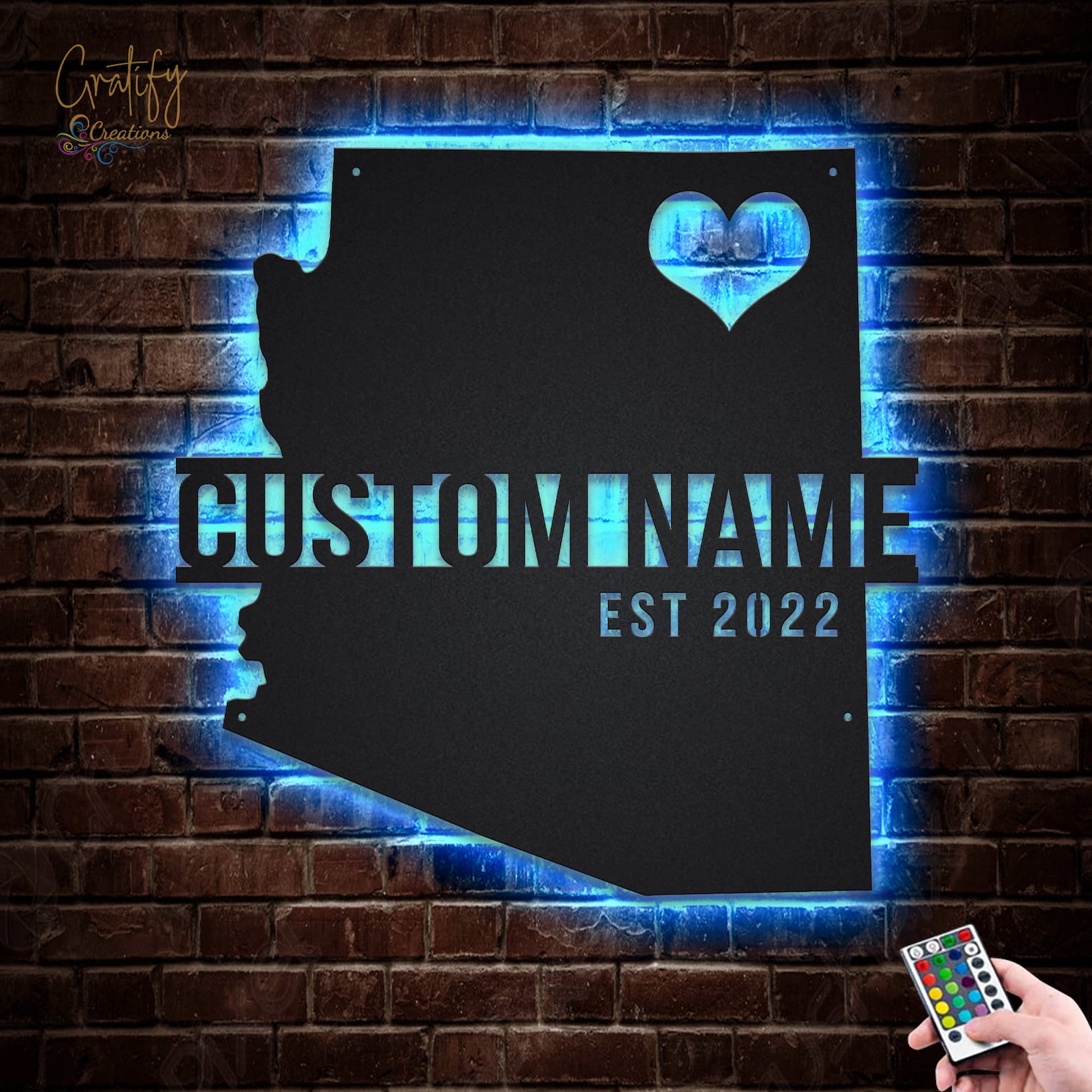 Be the first to review “Custom Arizona State Map Metal Sign with LED Light”
