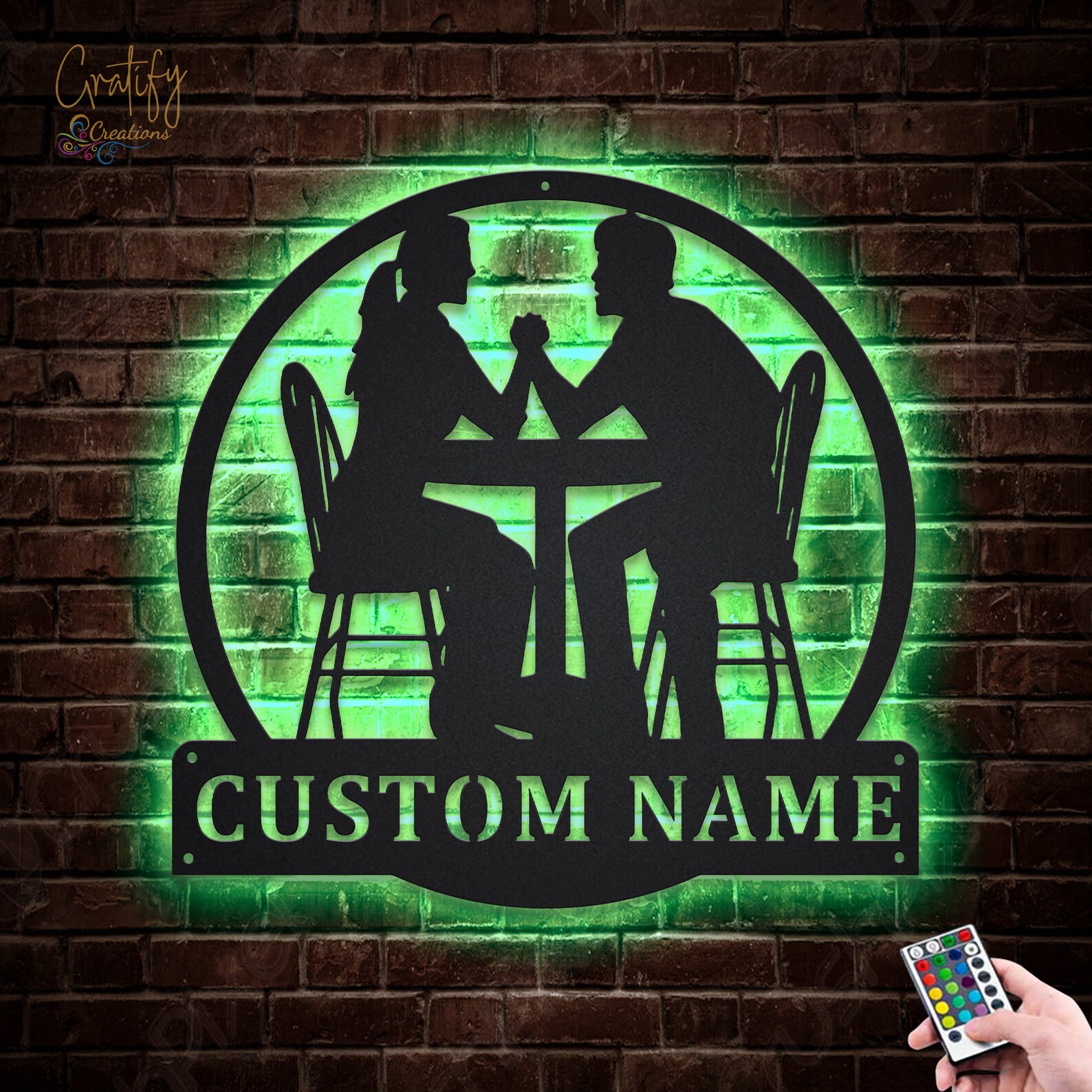 Custom Arm Wrestling Metal Sign with LED V5 – Neon Wall Decor