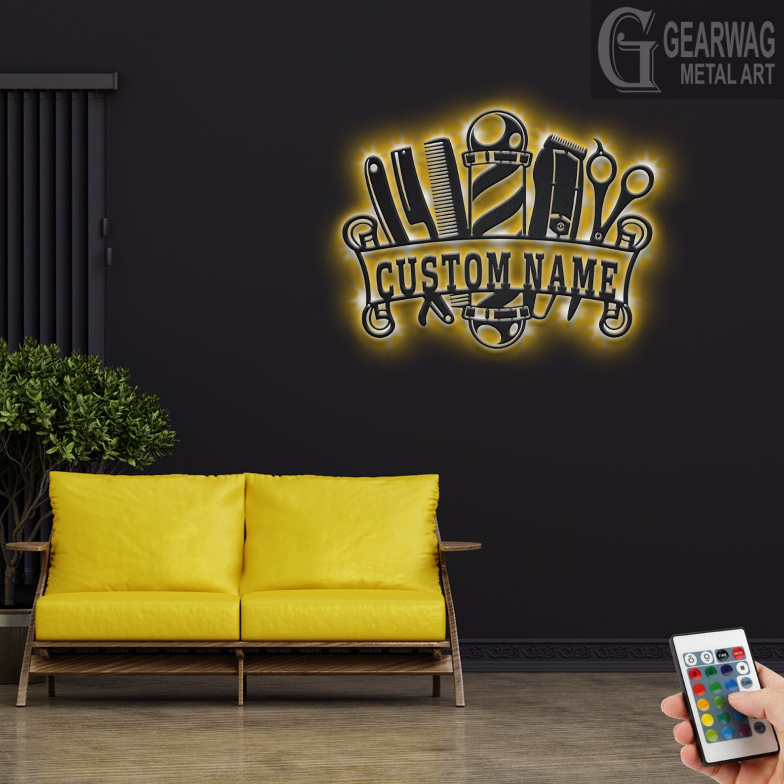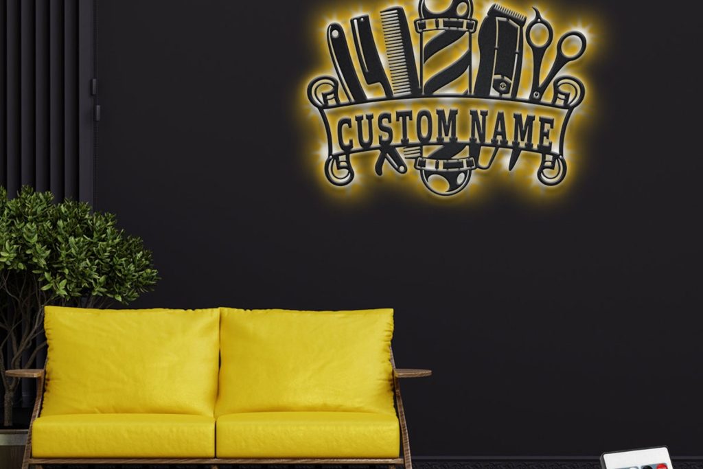 Be the first to review “Custom Barber Shop Metal Art with LED Light”