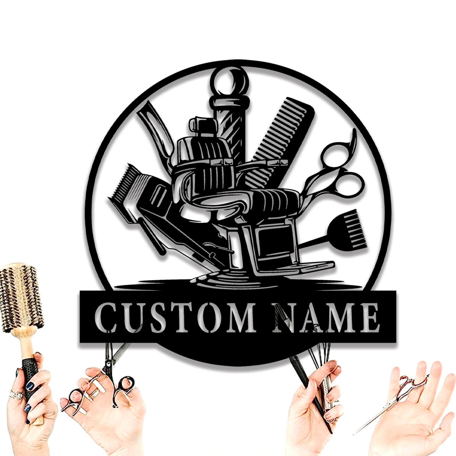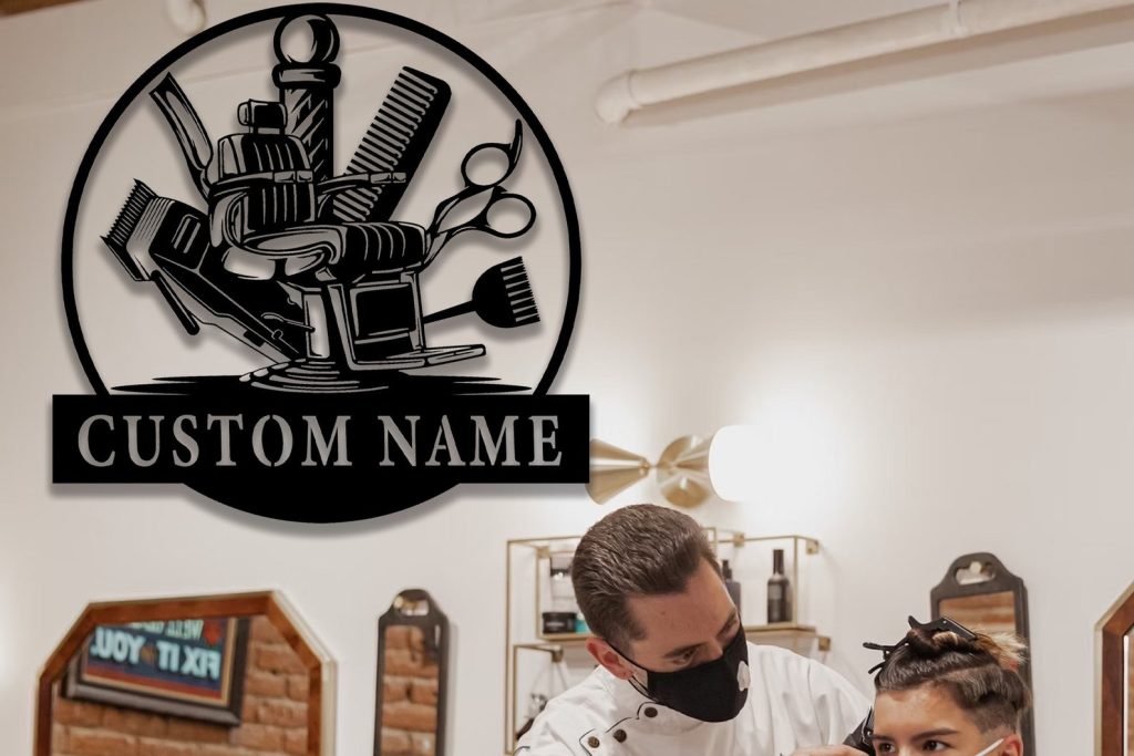 Custom Barber Shop Sign, Barber Shop Metal Wall Art, Personalized Hair Dresser Metal Sign, Hair Salon Sign, Hair Stylist Sign, 8-24 Inch
